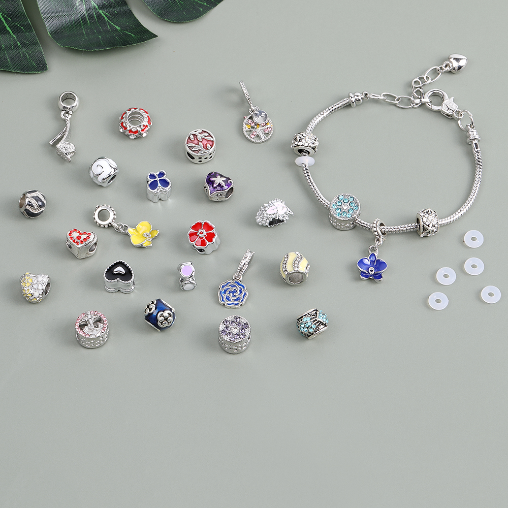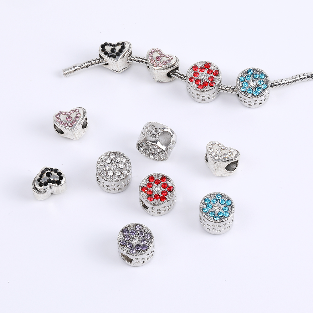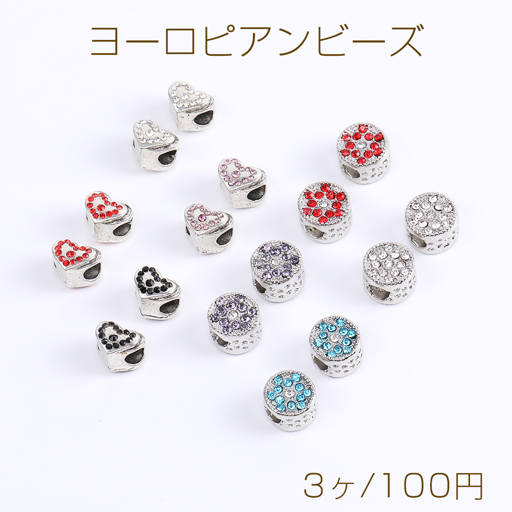 ヨーロピアンビーズ 全2種 ラインストーン付き アンティークシルバー(3ヶ)