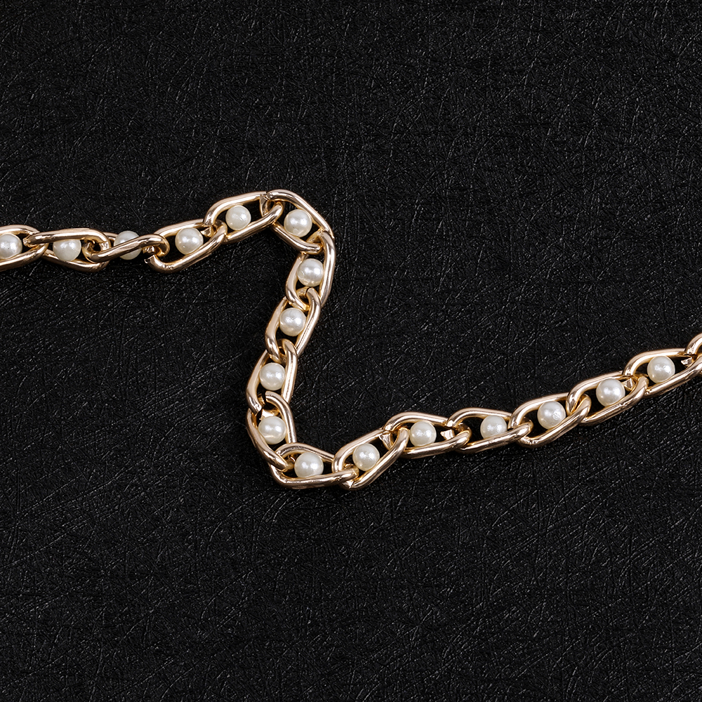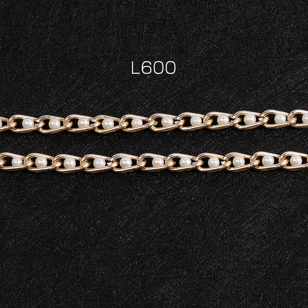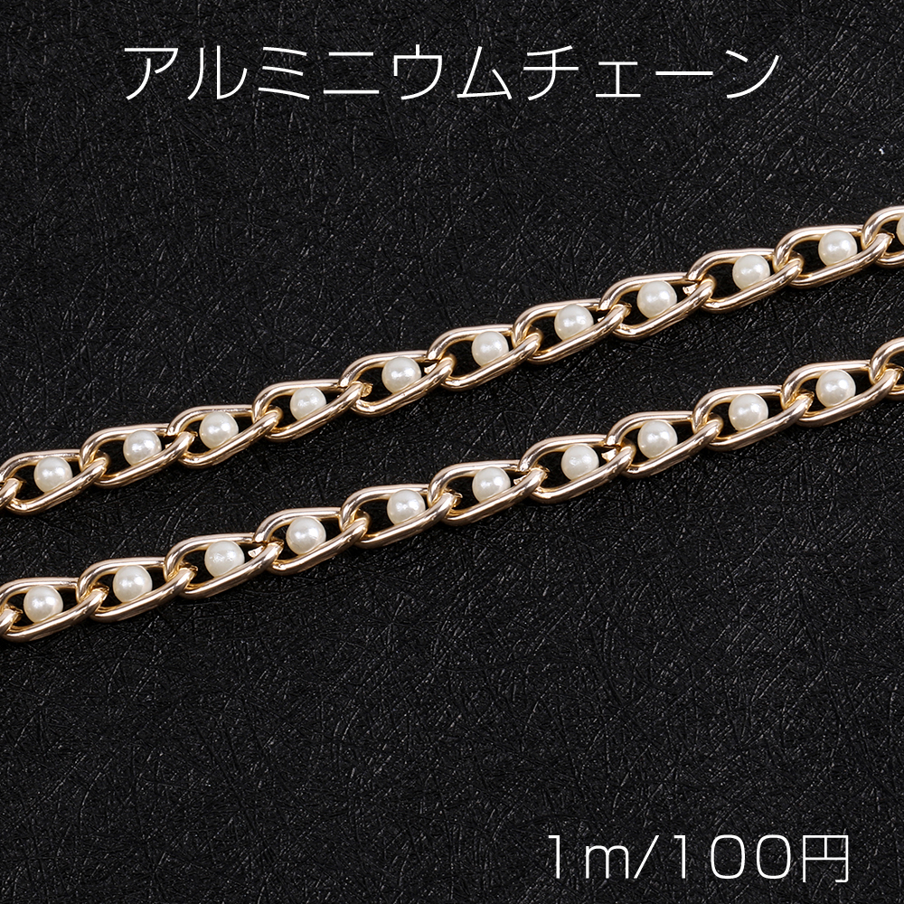 アルミニウムチェーン パール付き 幅約6mm ゴールド(1m)