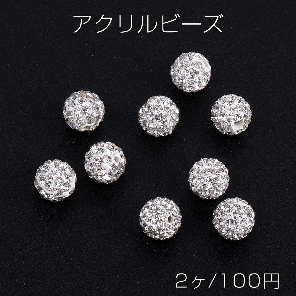 アクリルビーズ 丸玉 8mm ラインストーン付き クリスタル