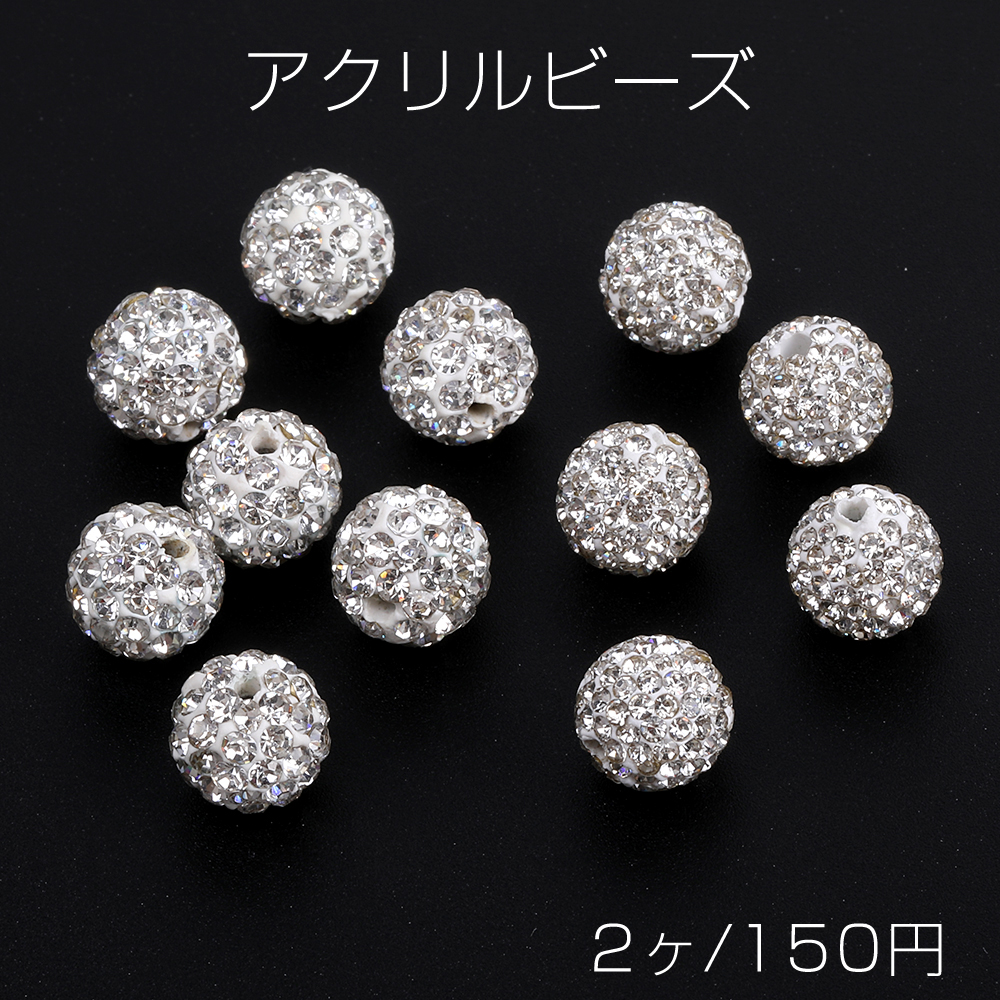 アクリルビーズ 丸玉 9mm ラインストーン付き クリスタル