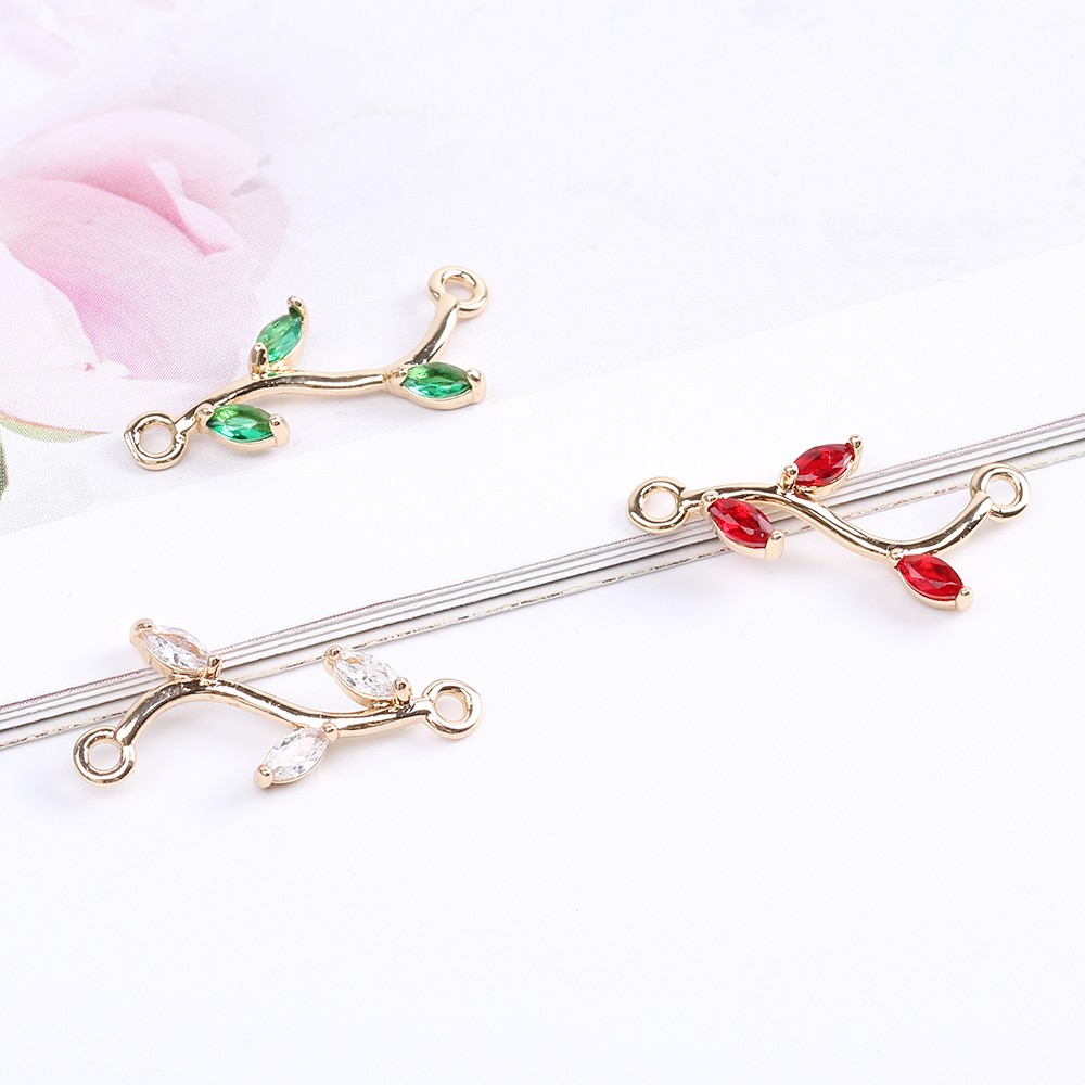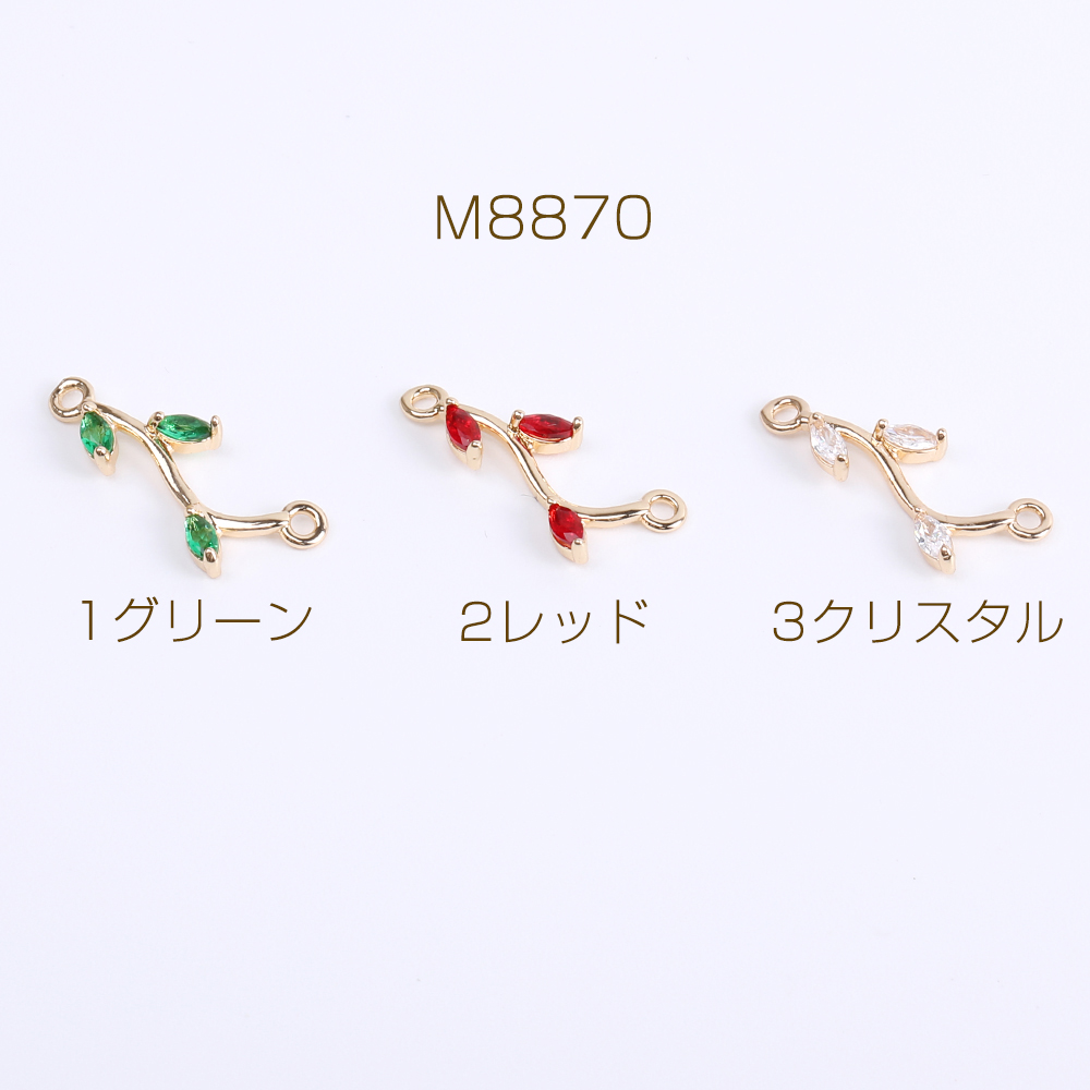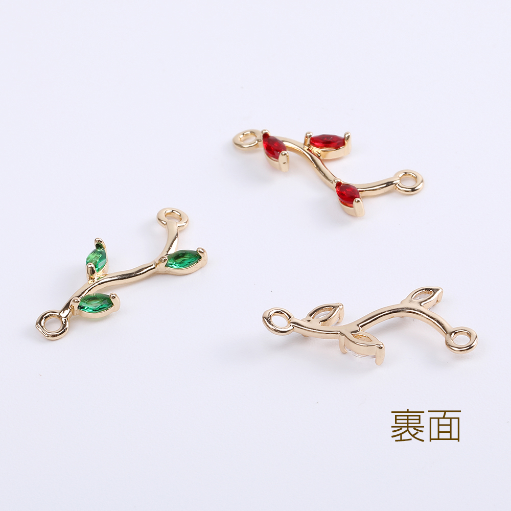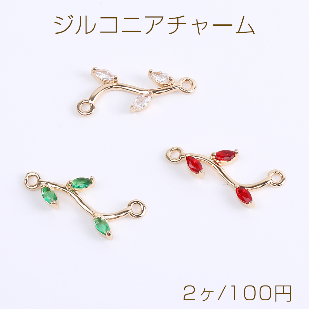 ジルコニアチャーム コネクターチャーム リーフの枝 2カン付き 10×21mm ゴールド(2ヶ)