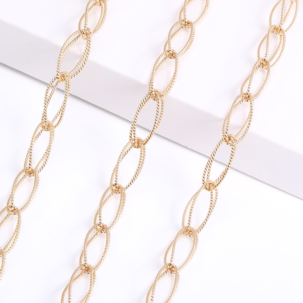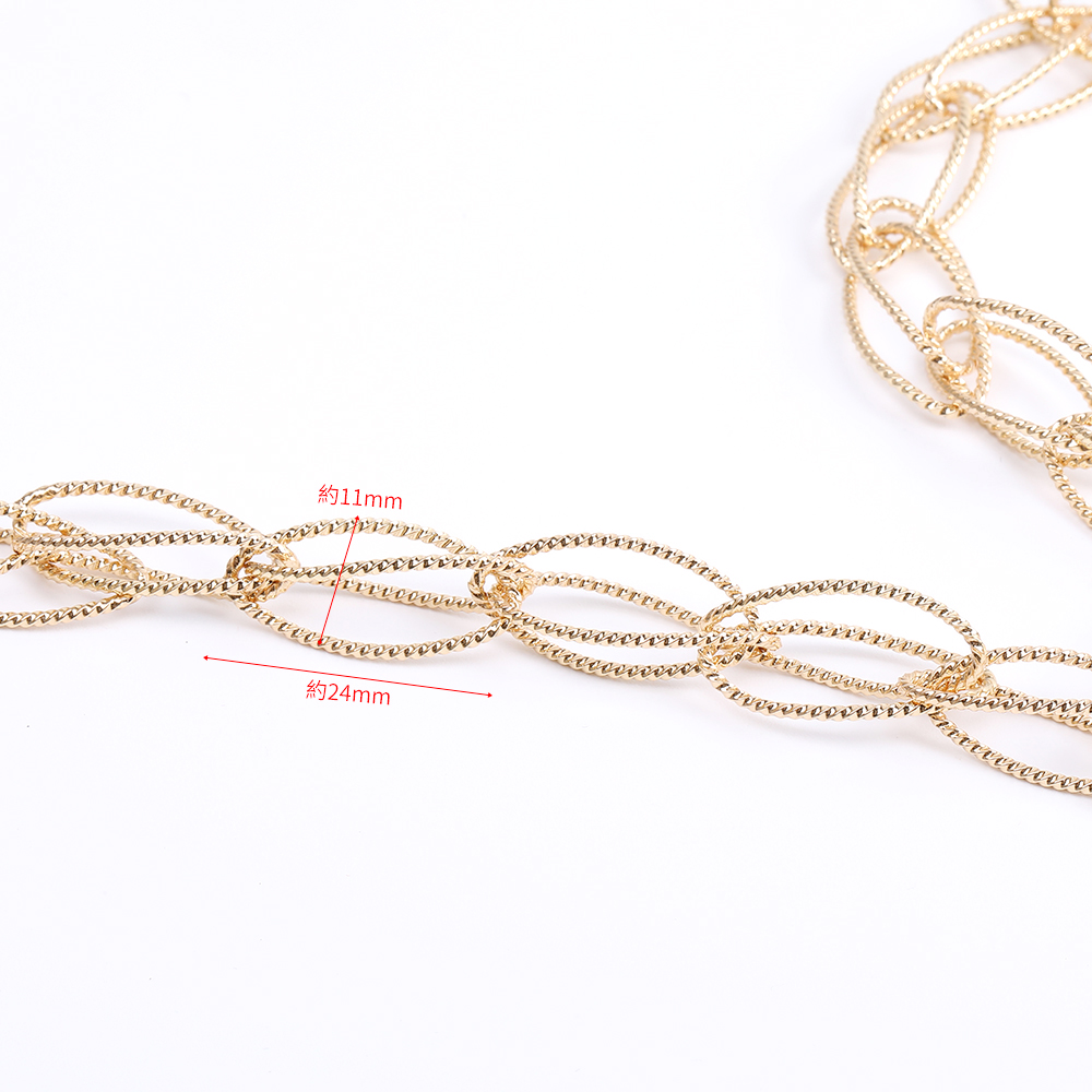 高品質デザインチェーン ハンドメードチェーン オーバル 11×24mm 16Kゴールドメッキ 色落ちしにくい(10cm)
