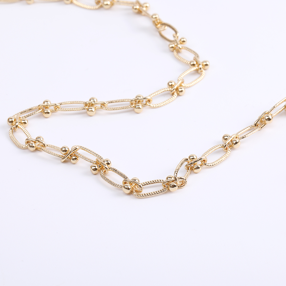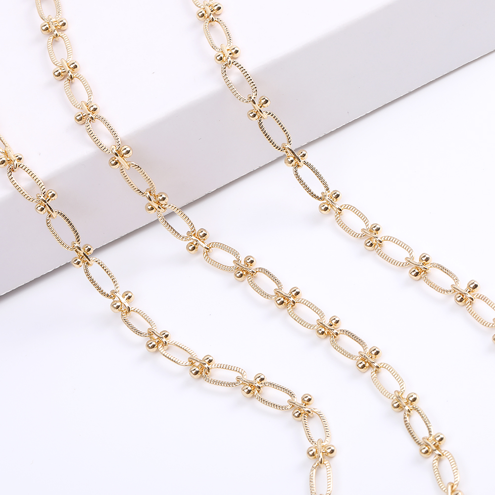 高品質デザインチェーン ハンドメードチェーン オーバル 幅約5mm 16Kゴールドメッキ 色落ちしにくい(10cm)