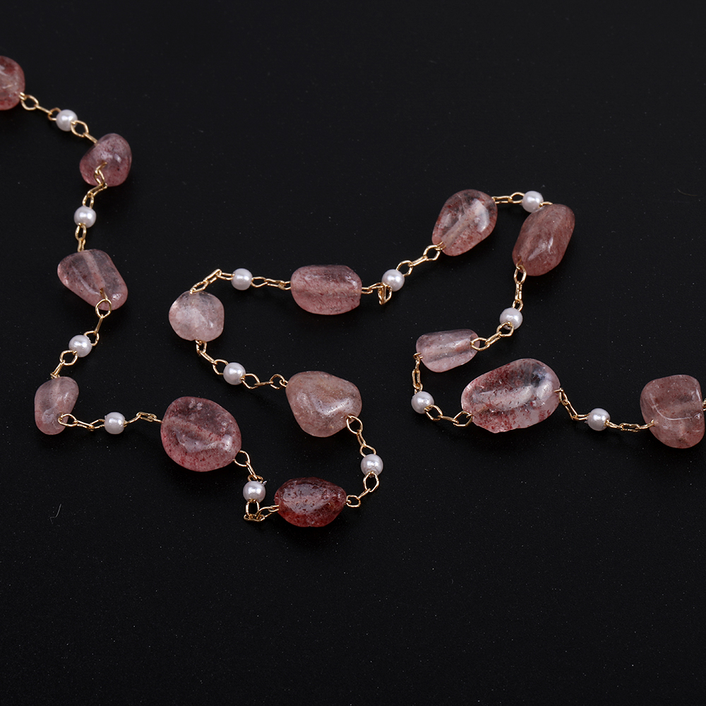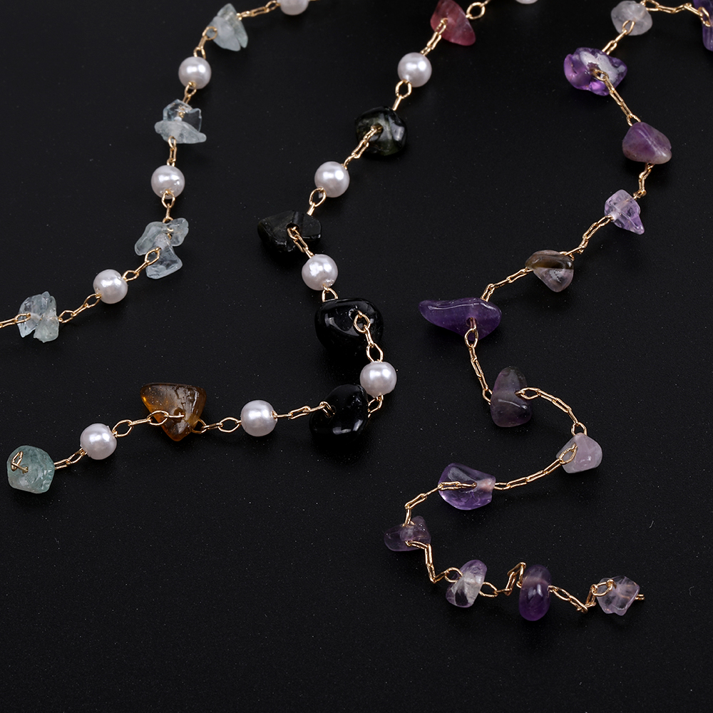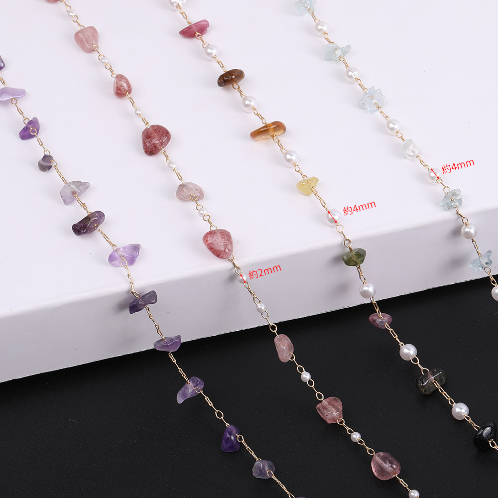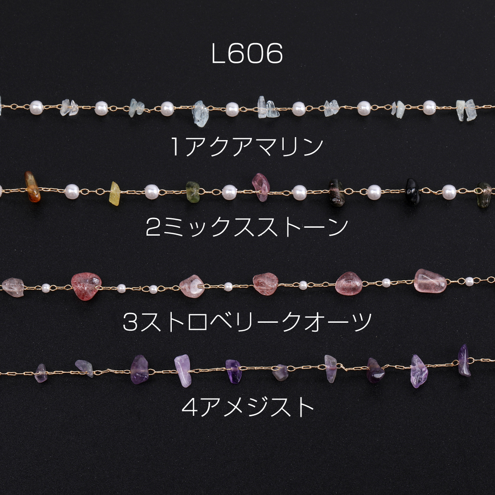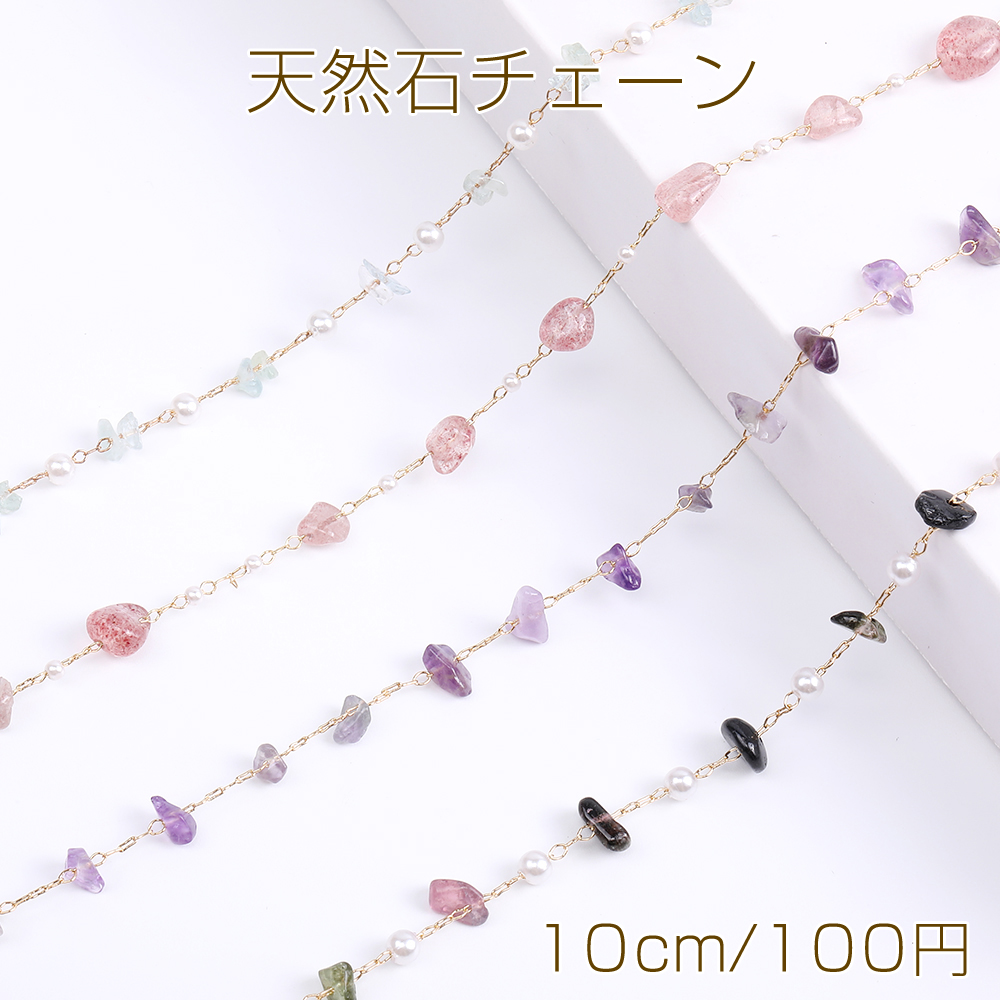 高品質天然石チェーン パール付き ハンドメードチェーン 16Kゴールドメッキ 色落ちしにくい(10cm)