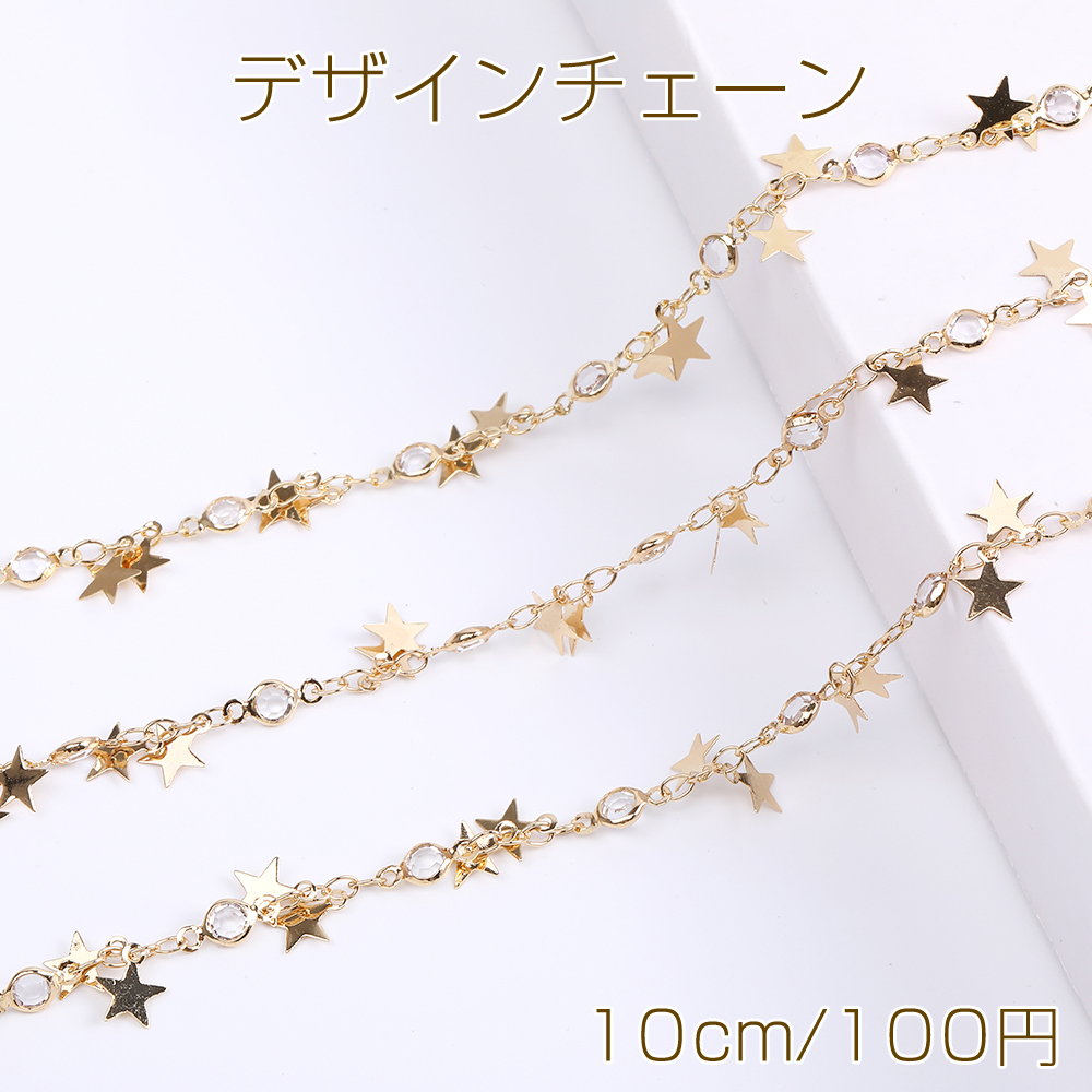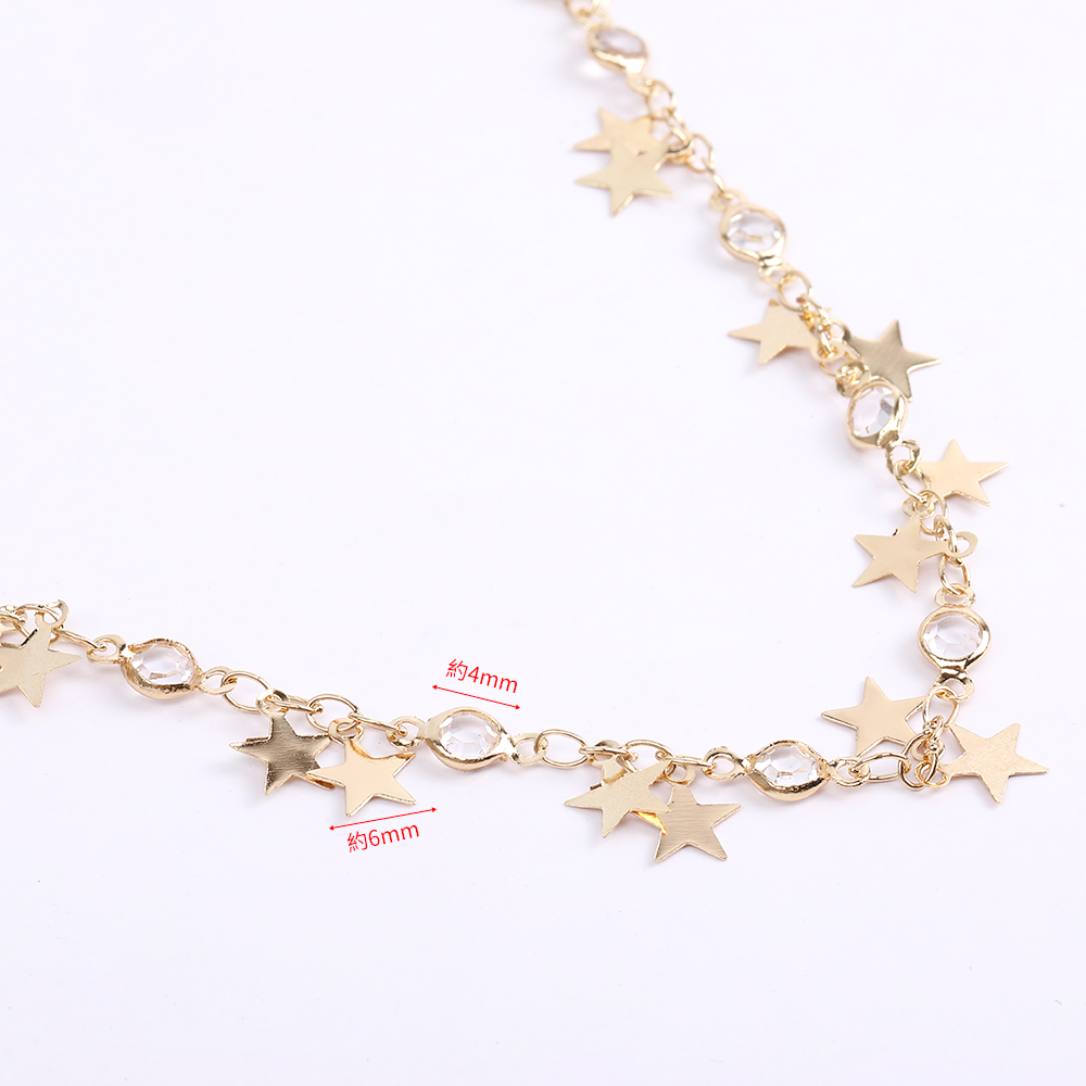 高品質デザインチェーン ハンドメードチェーン 星形付き 6mm 16Kゴールドメッキ 色落ちしにくい(10cm)
