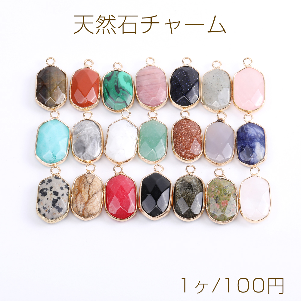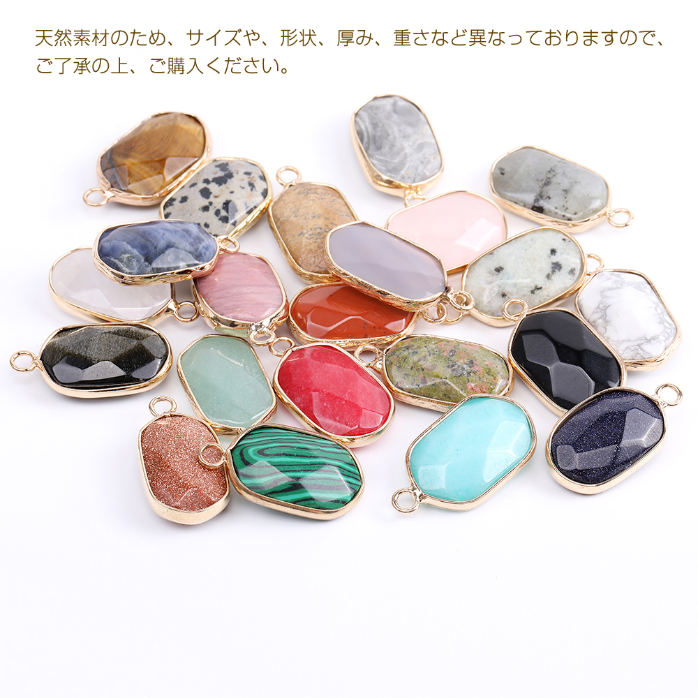 天然石チャーム オーバル カン付き 14×25mm ゴールド No.1-11(1ヶ)