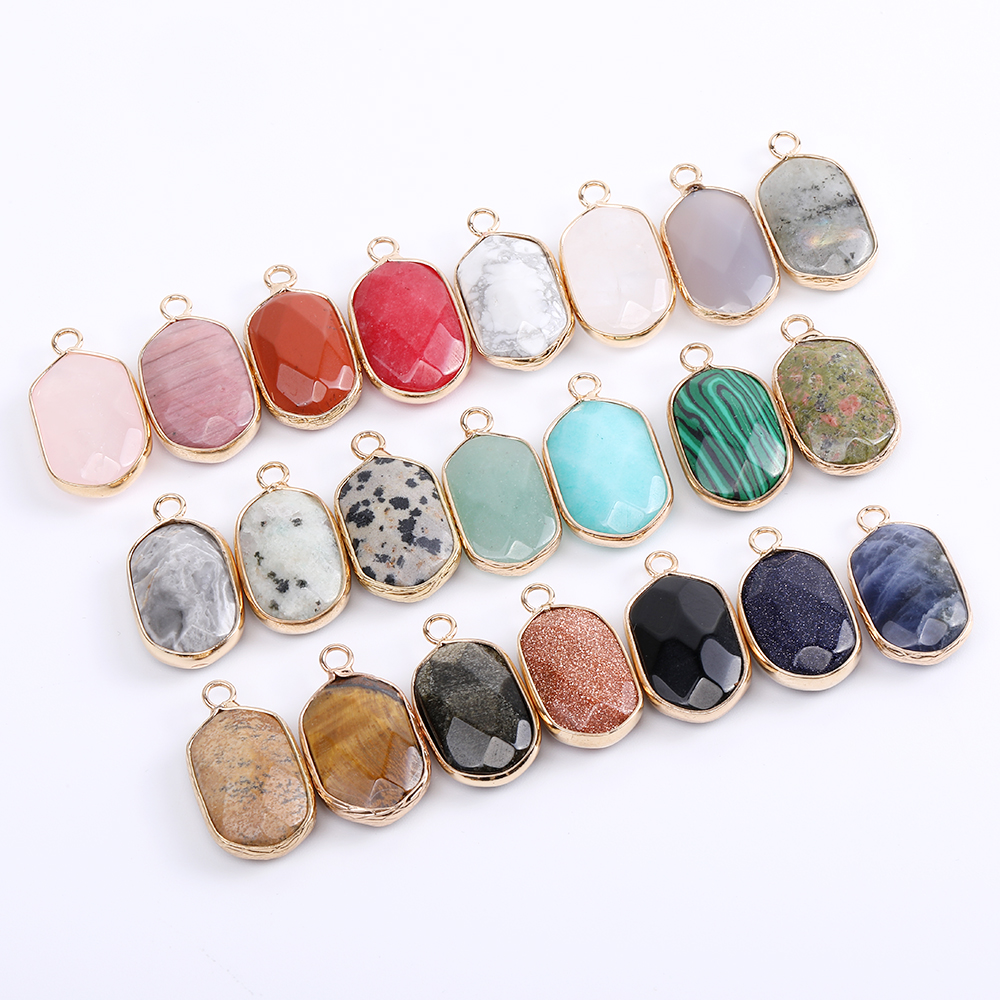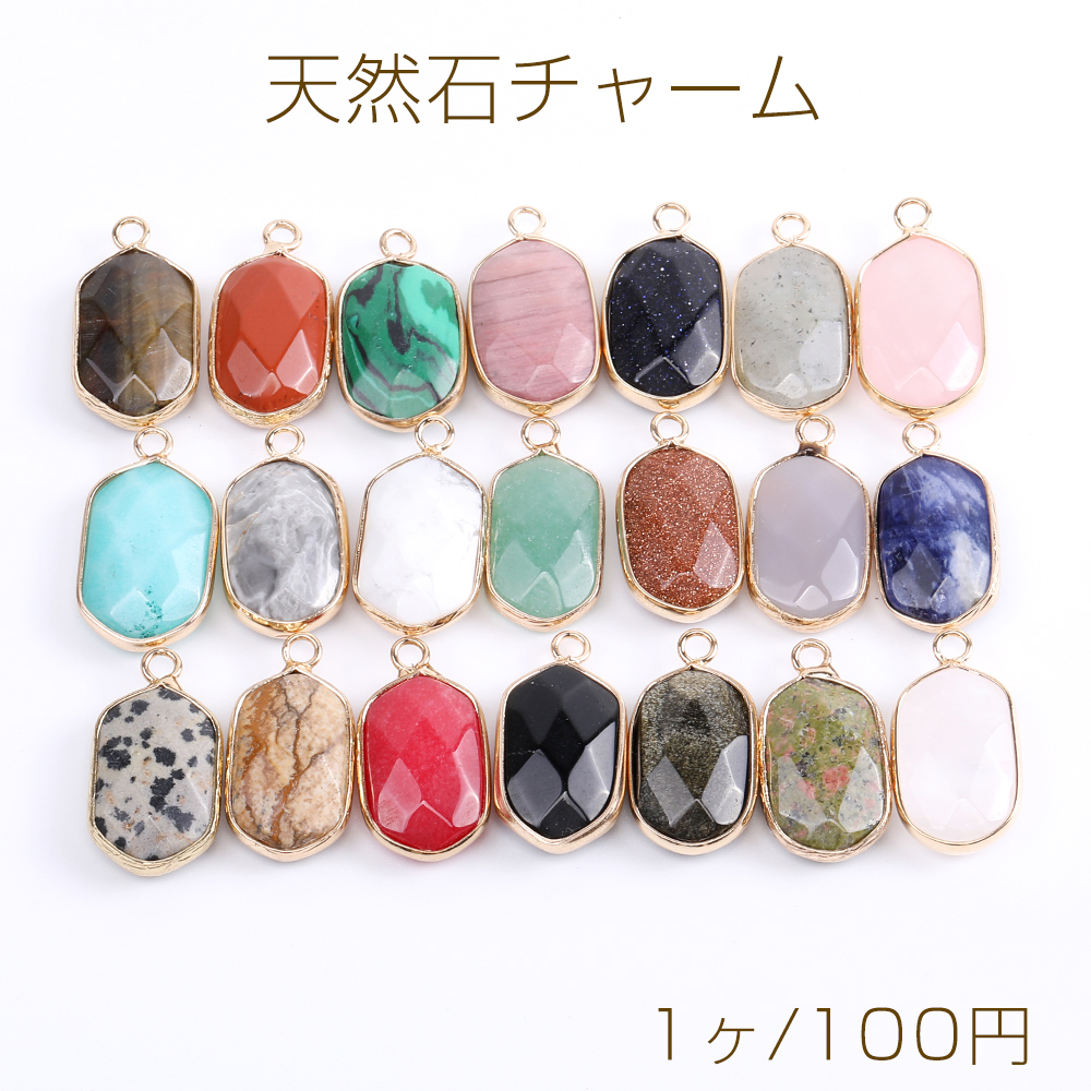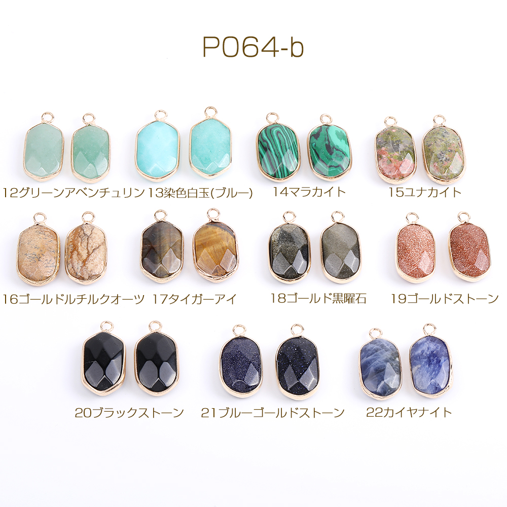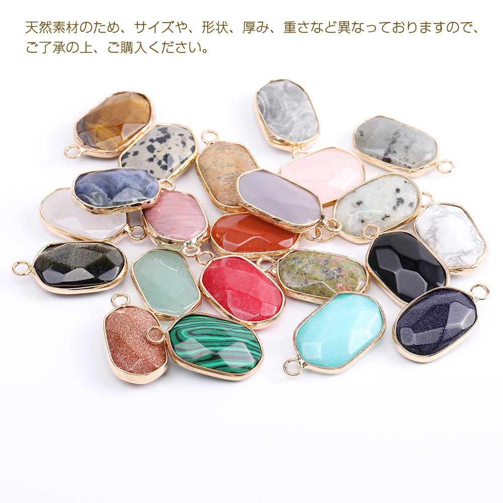 天然石チャーム オーバル カン付き 14×25mm ゴールド No.12-22(1ヶ)