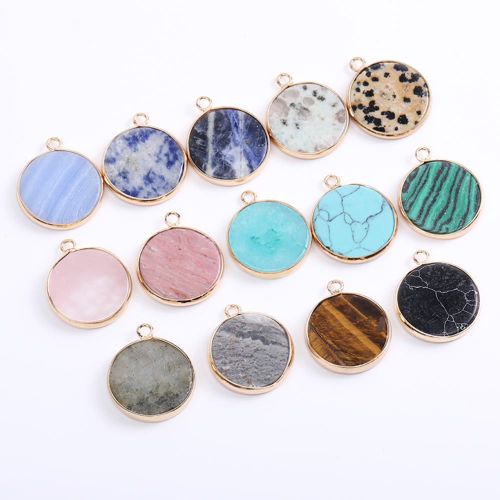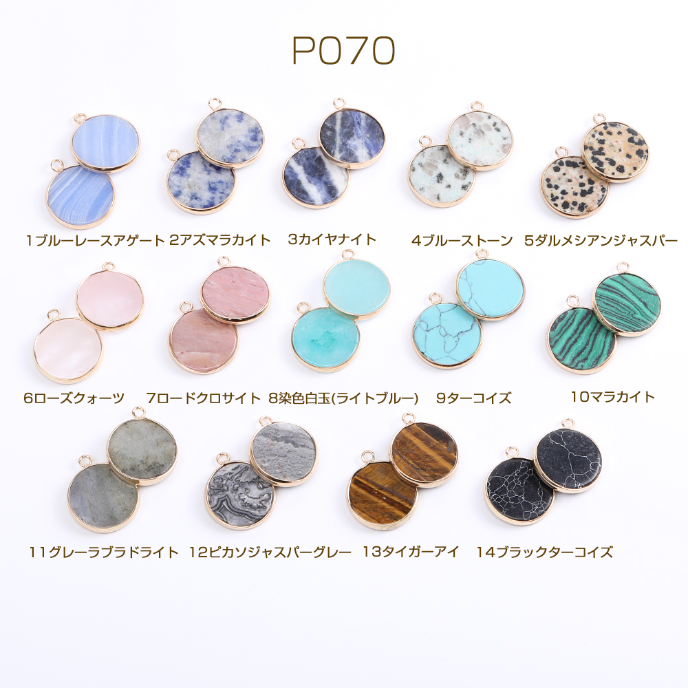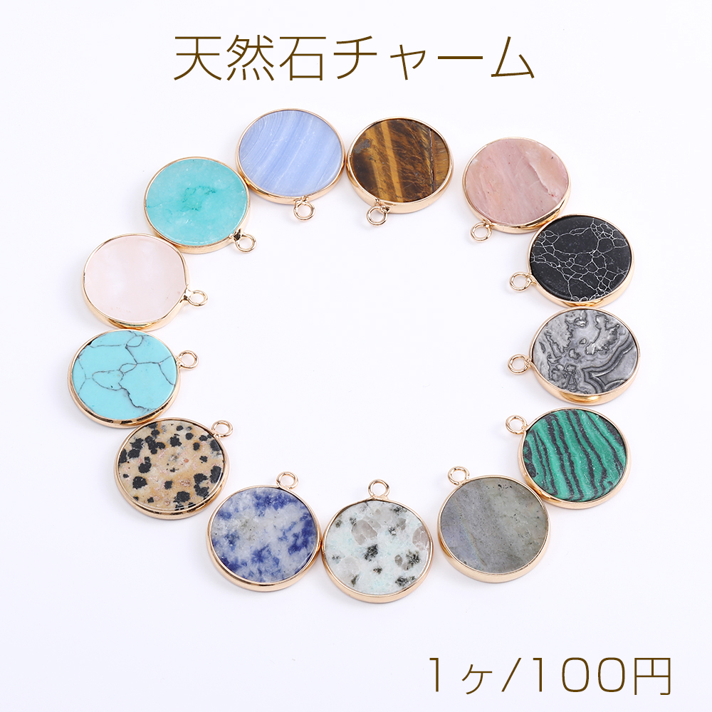 天然石チャーム ラウンド カン付き 21×25mm ゴールド(1ヶ)