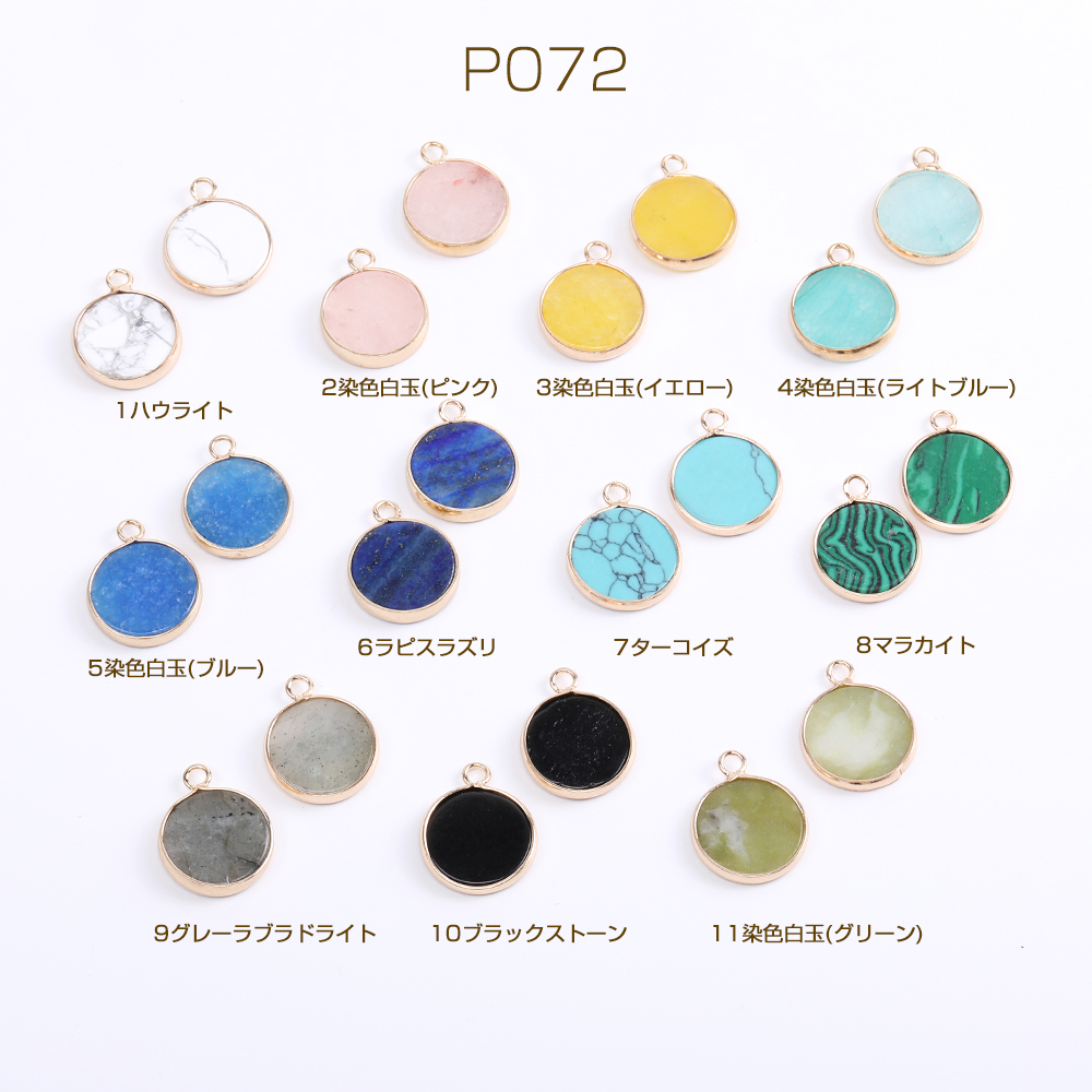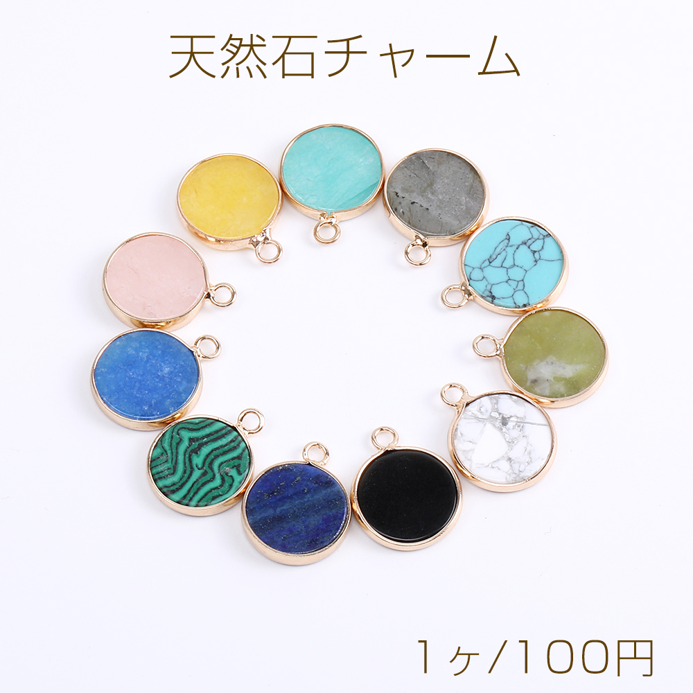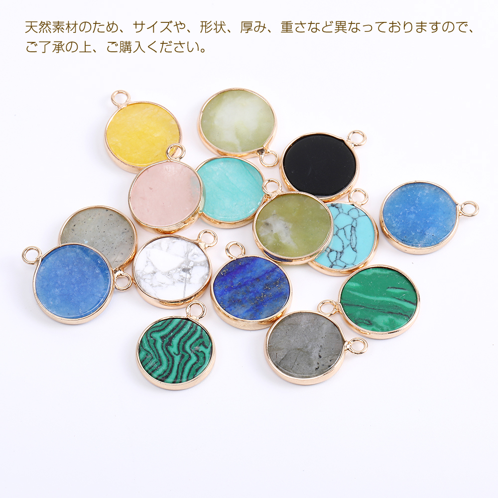天然石チャーム ラウンド カン付き 16×20mm ゴールド(1ヶ)