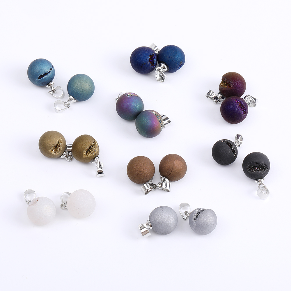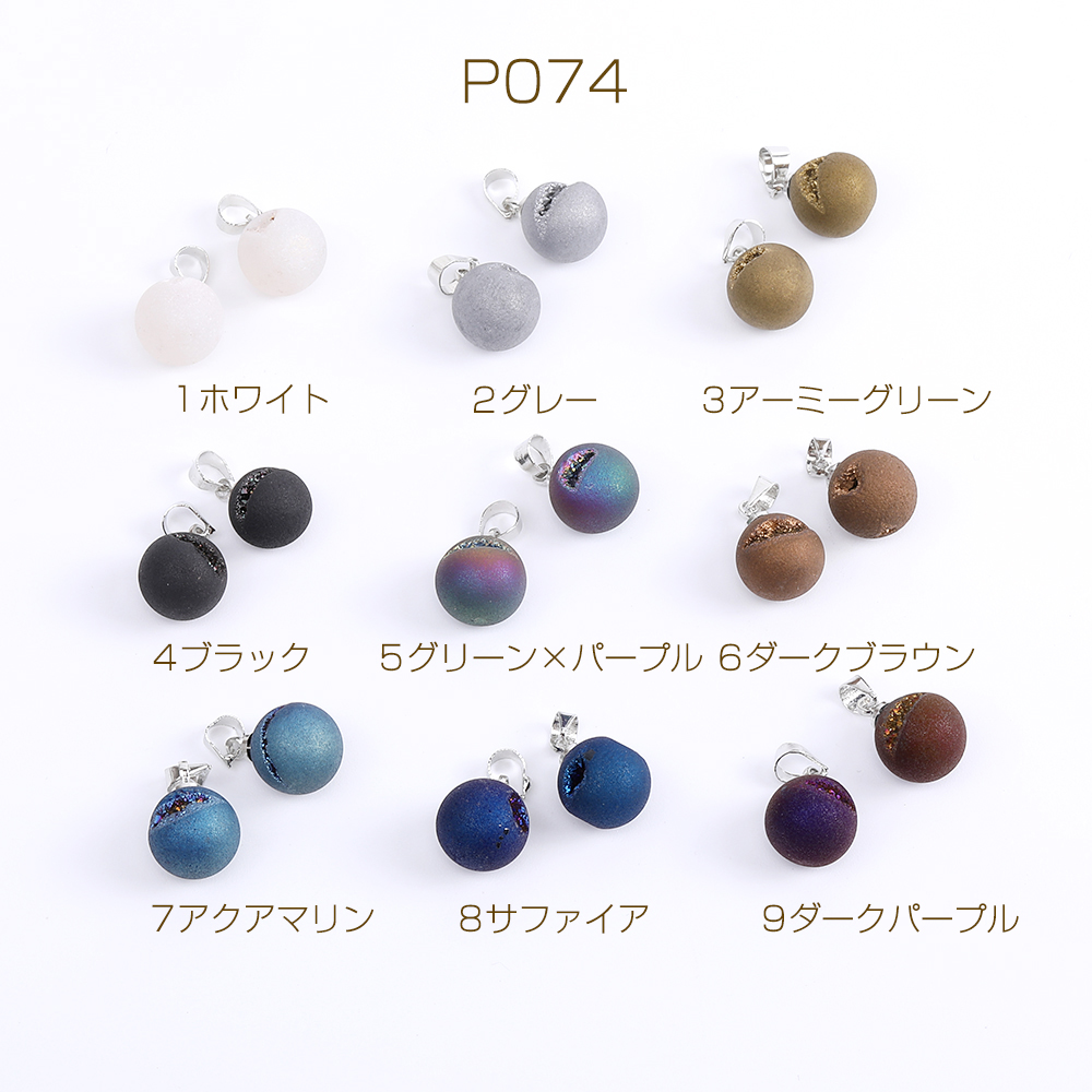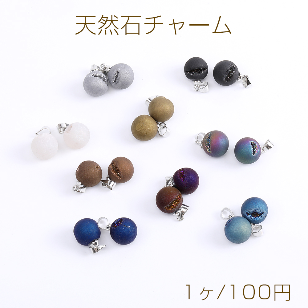 天然石チャーム アゲート 10mm バチカン付き ロジウム(1ヶ)