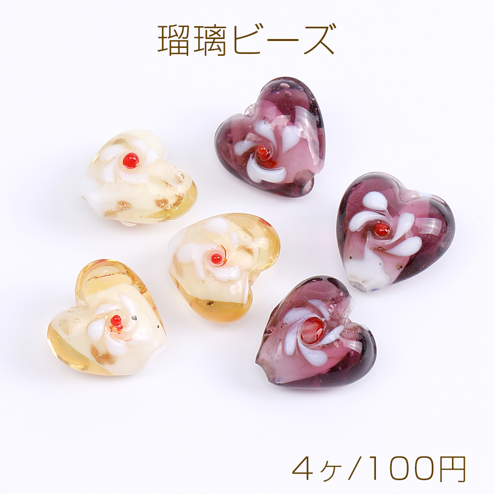 瑠璃ビーズ ハート型 15×15mm(4ヶ)