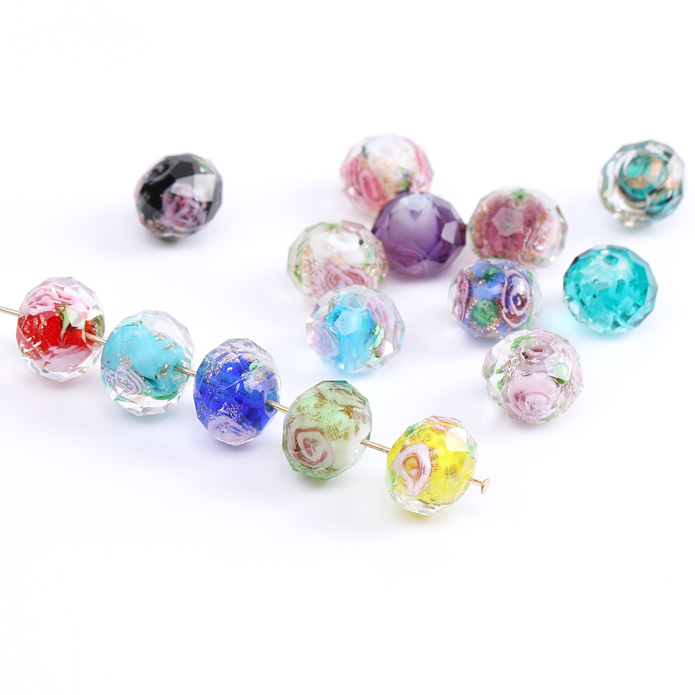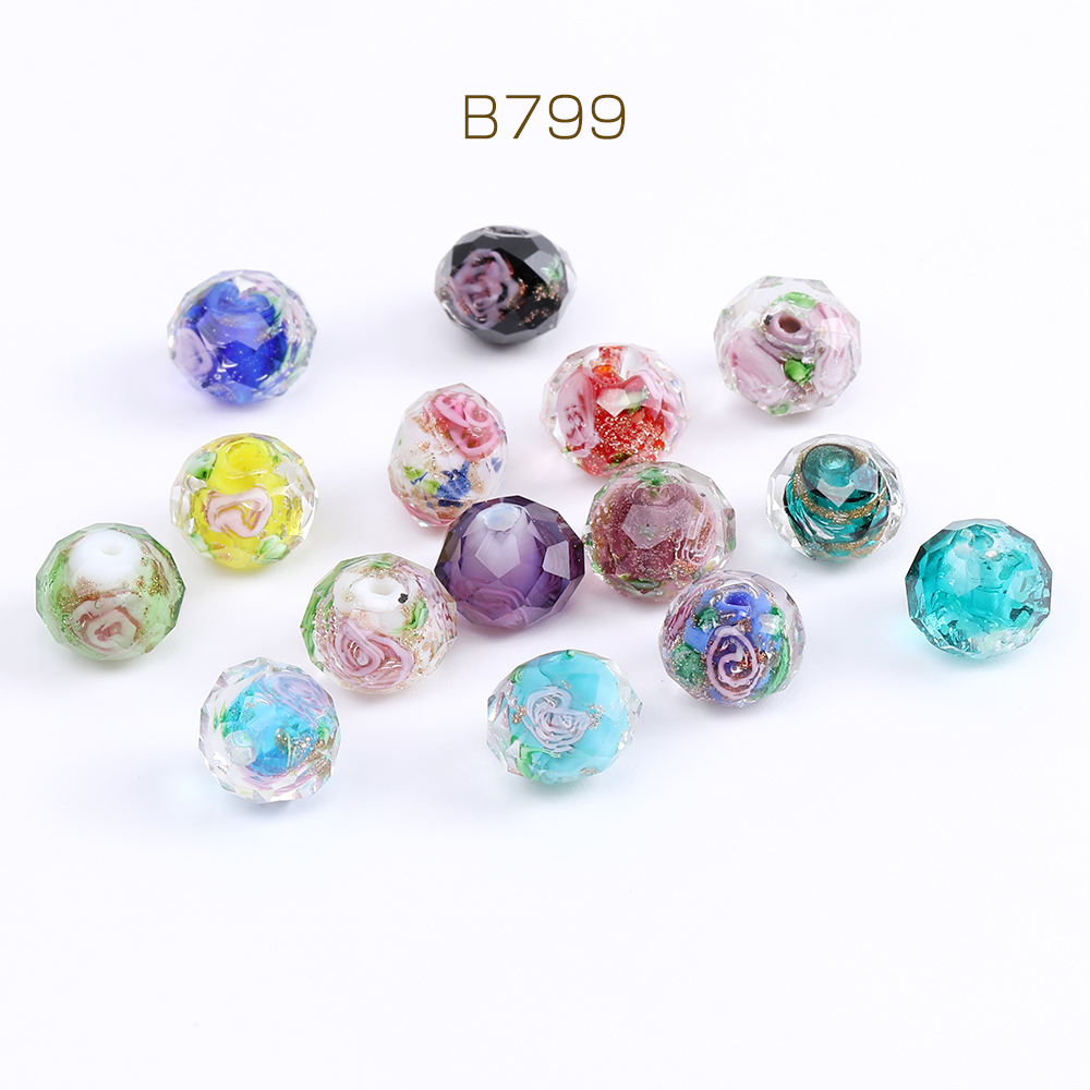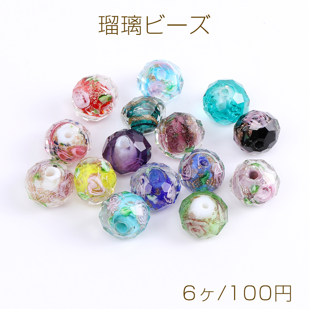 瑠璃ビーズ ボタンカット 8×10mm ミックスカラー(6ヶ)