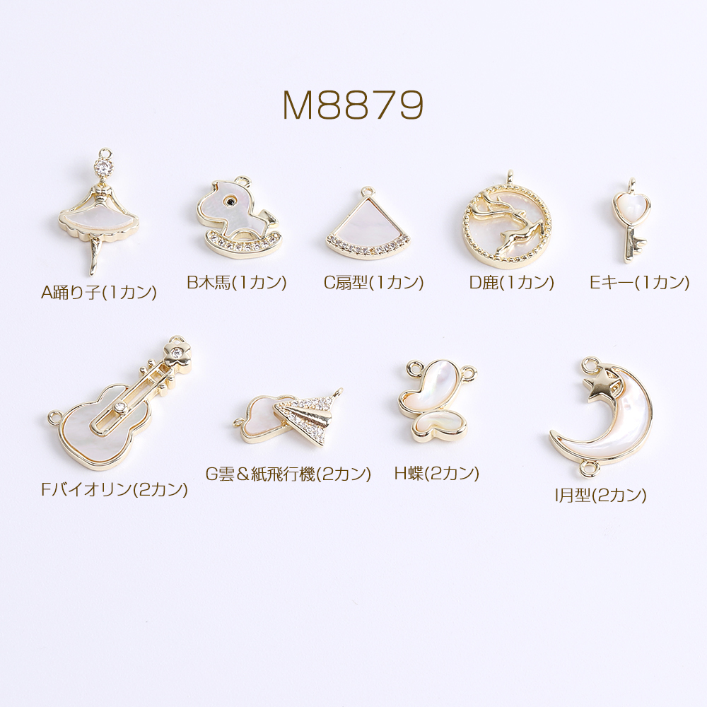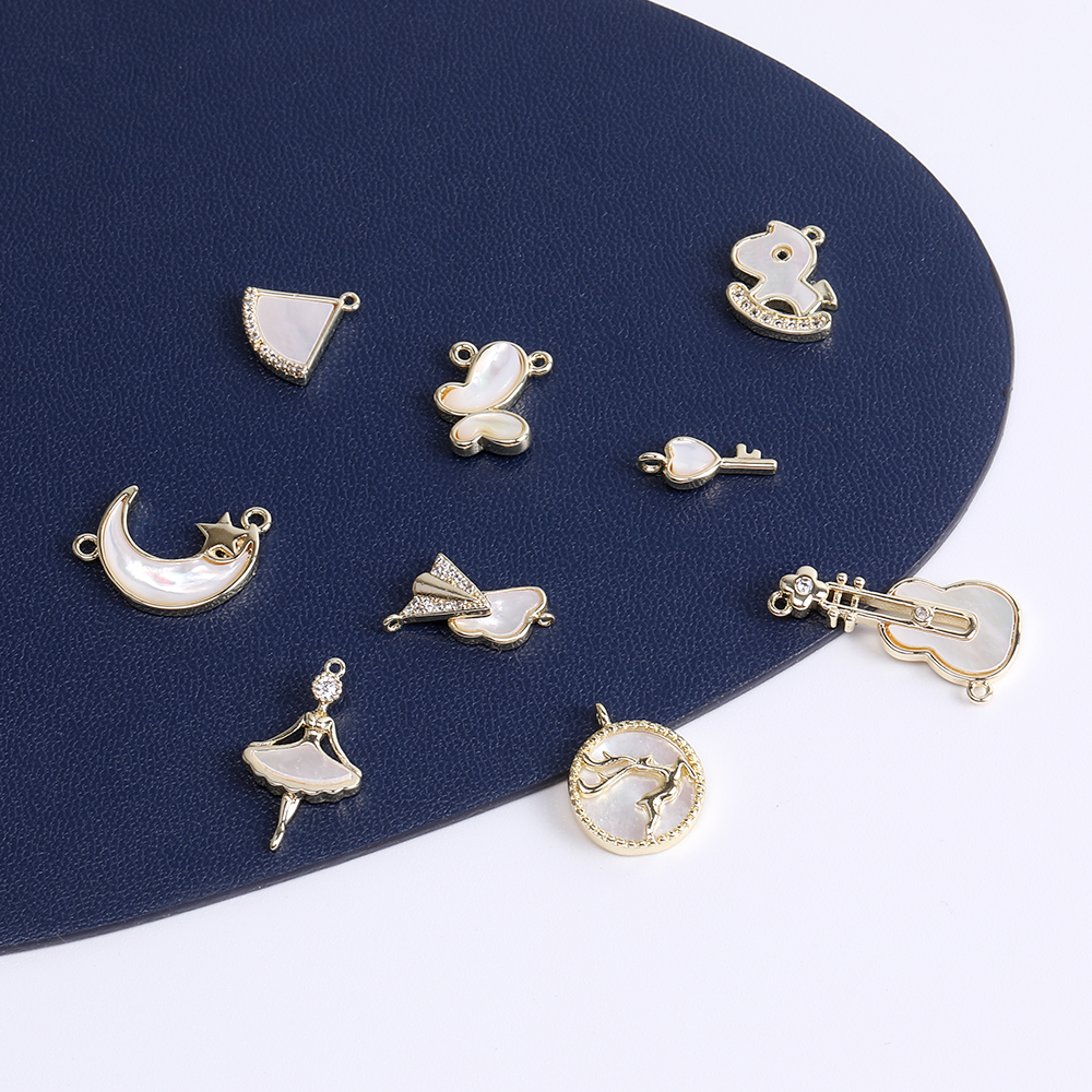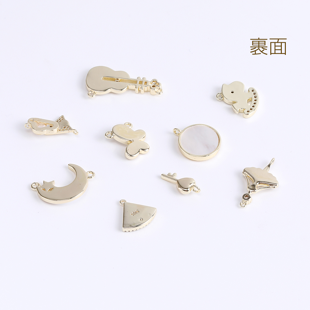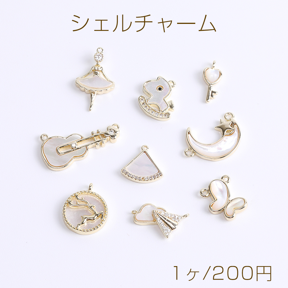高品質シェルチャーム ジルコニア付き 全9種 18Kゴールドメッキ 色落ちしにくい(1ヶ)