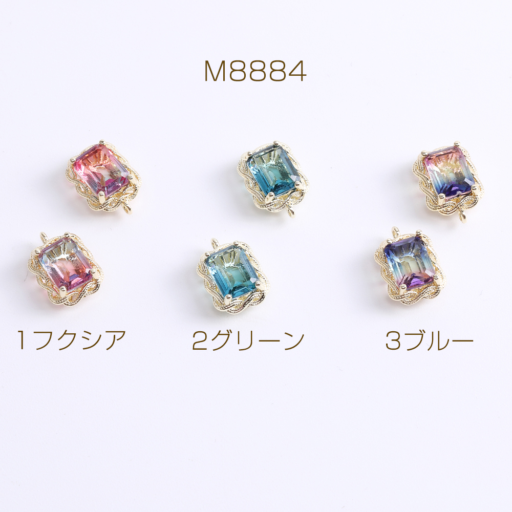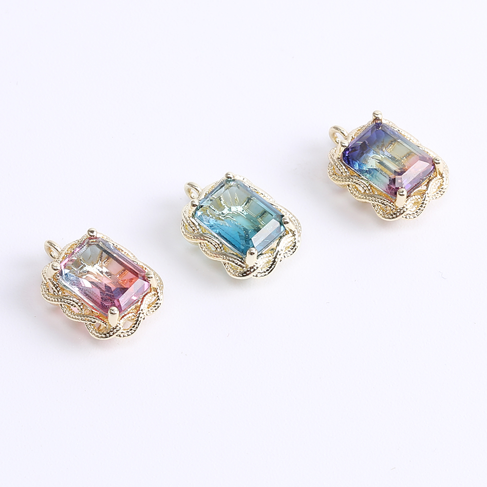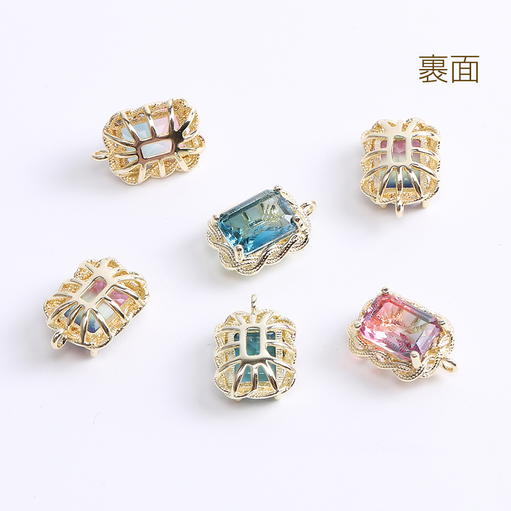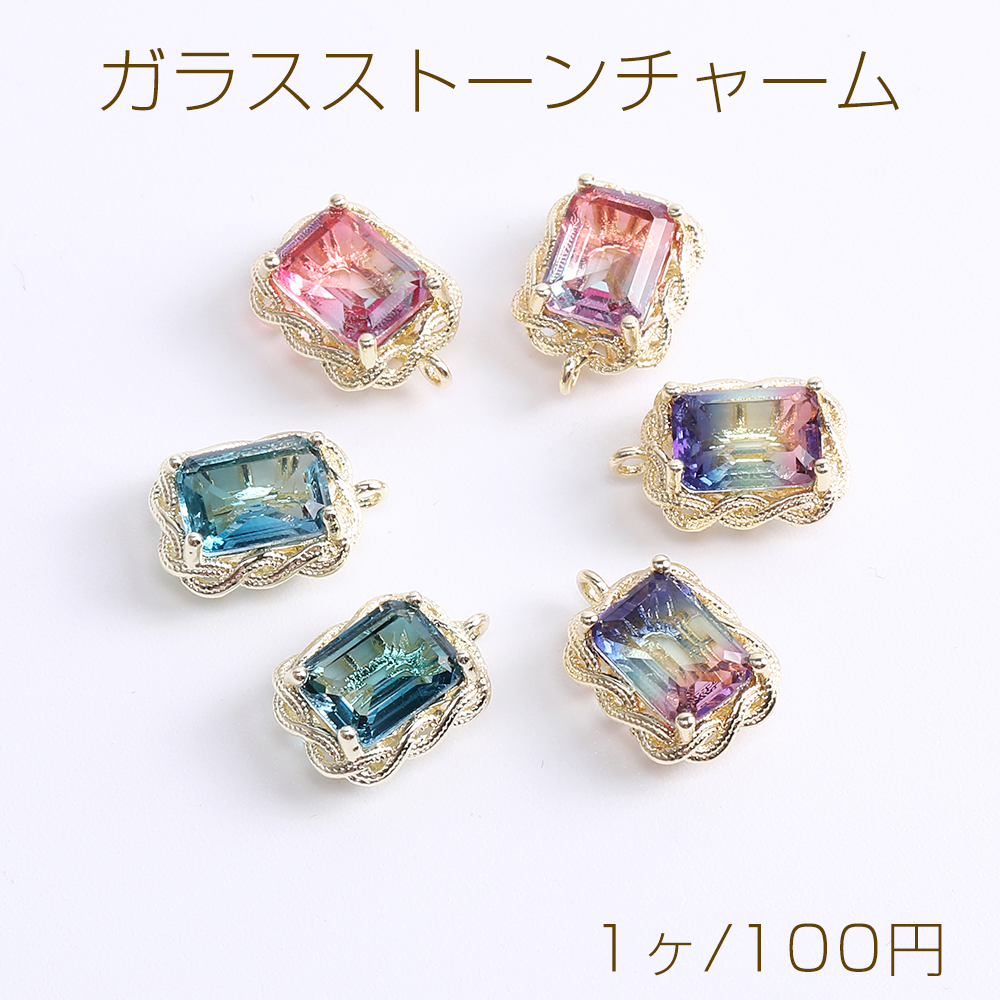 高品質ガラスストーンチャーム 長方形型 カン付き 9×13mm 18Kゴールドメッキ 色落ちしにくい(1ヶ)