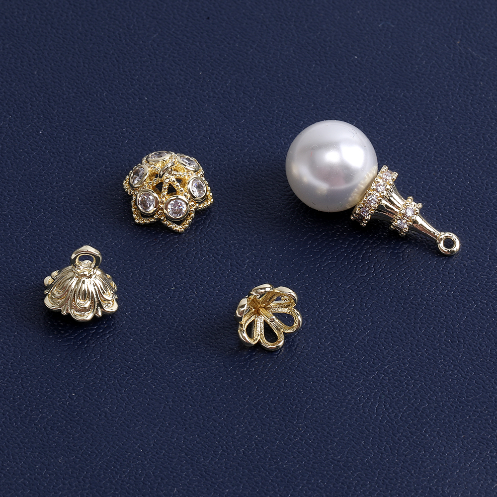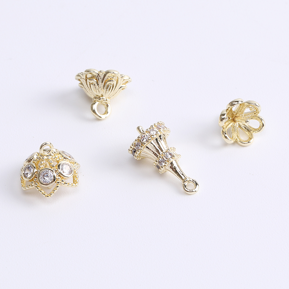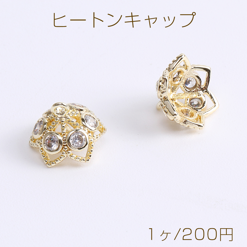 高品質ヒートンキャップ ジルコニア付き カン付き 7×9mm 18Kゴールドメッキ 色落ちしにくい(1ヶ)