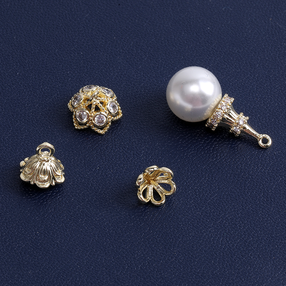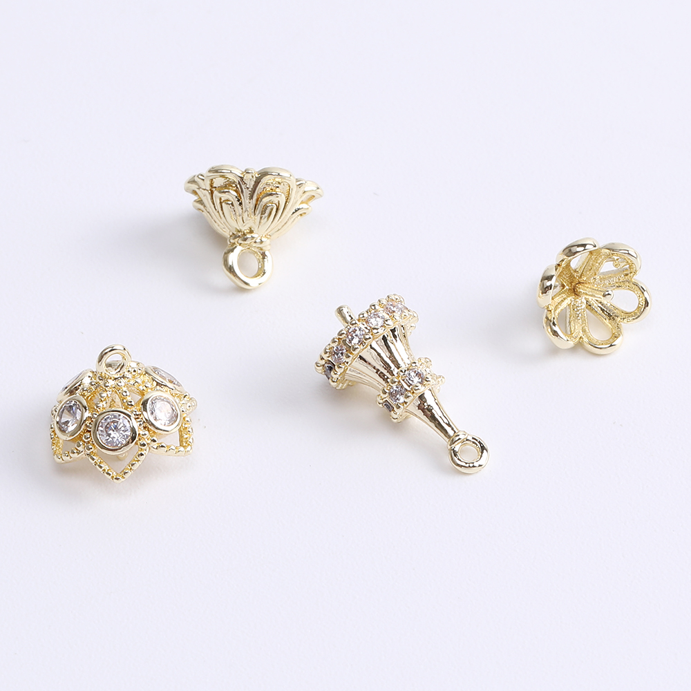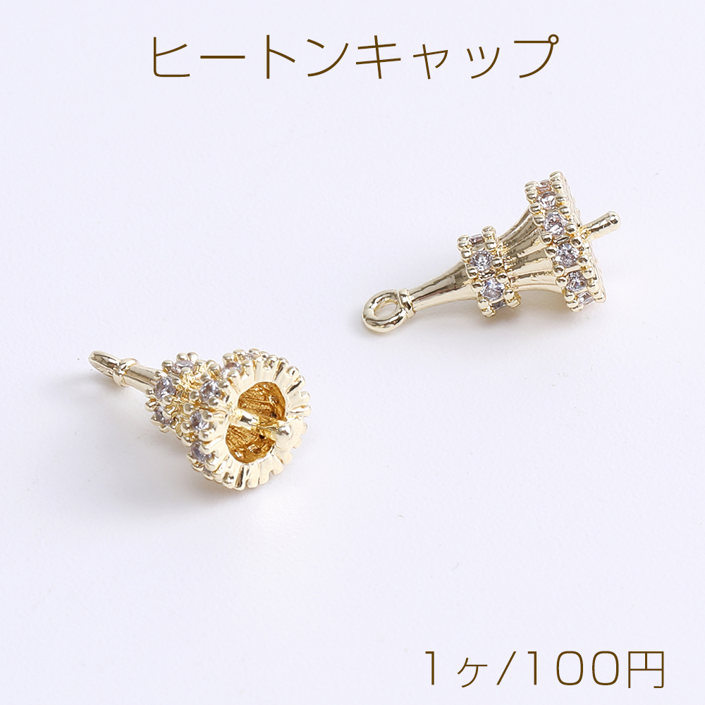 高品質ヒートンキャップ ジルコニア付き カン付き 7×13mm 18Kゴールドメッキ 色落ちしにくい(1ヶ)