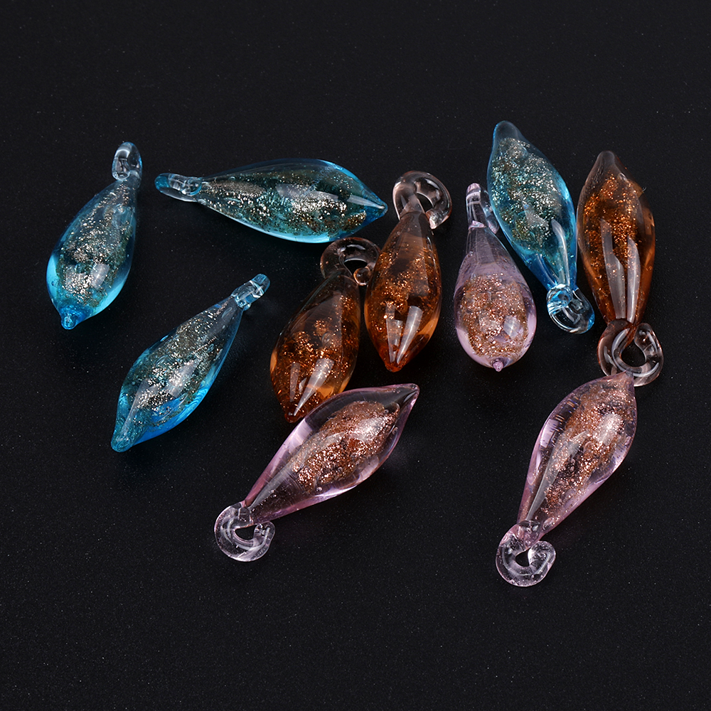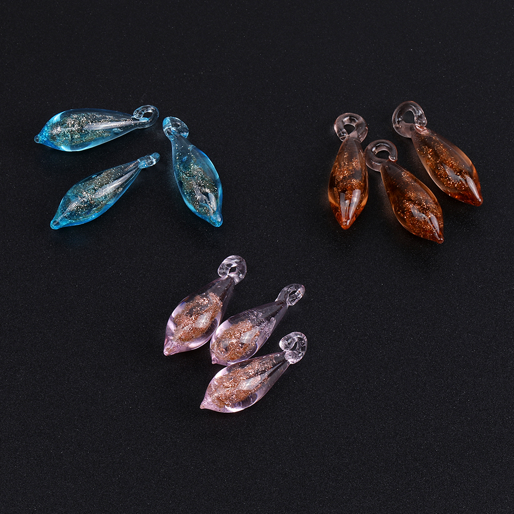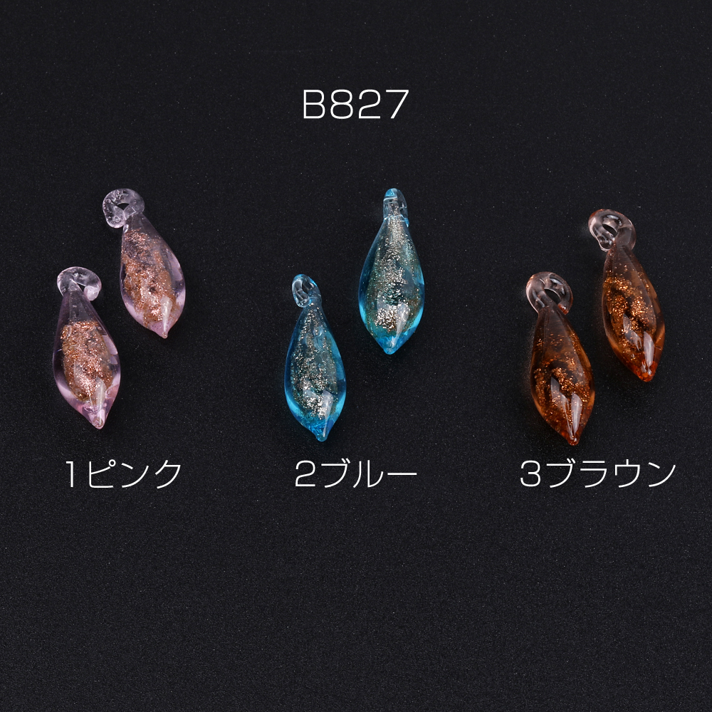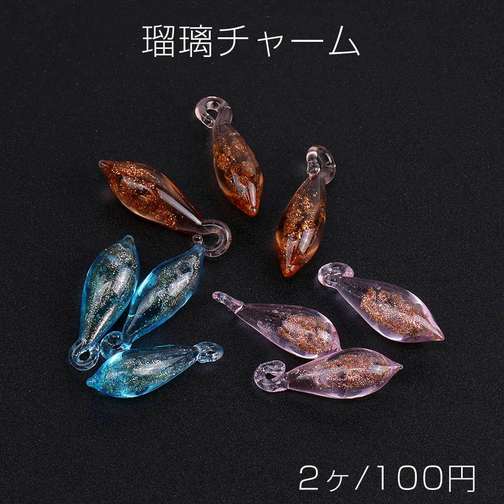 瑠璃チャーム 金箔入り しずく型 花びら カン付き 8×25mm(2ヶ)