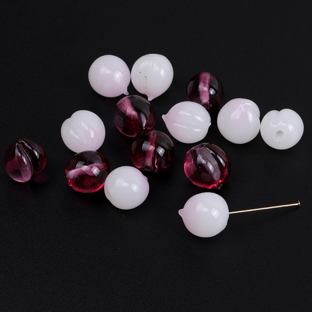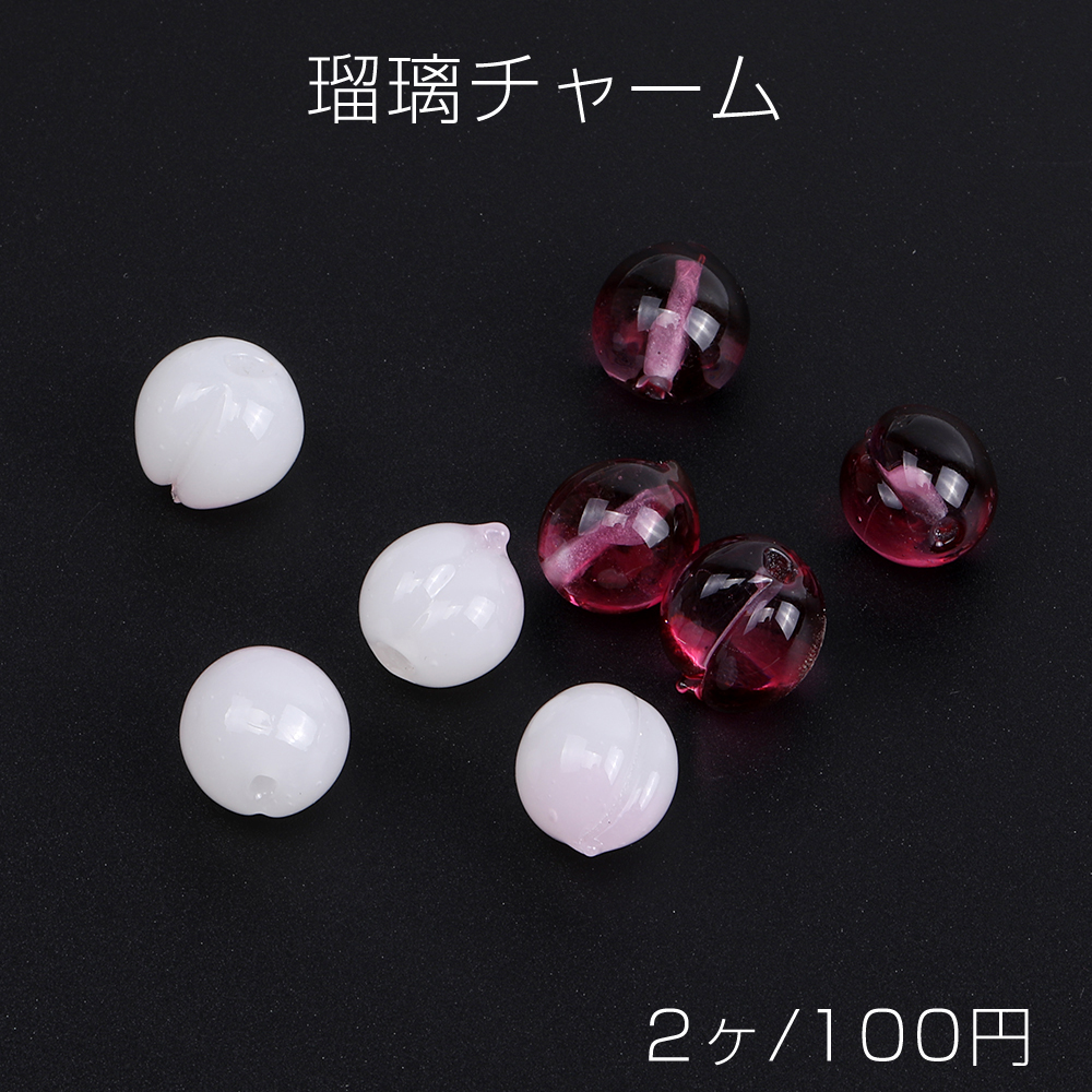 瑠璃チャーム 桃 半穴 12×14mm(2ヶ)