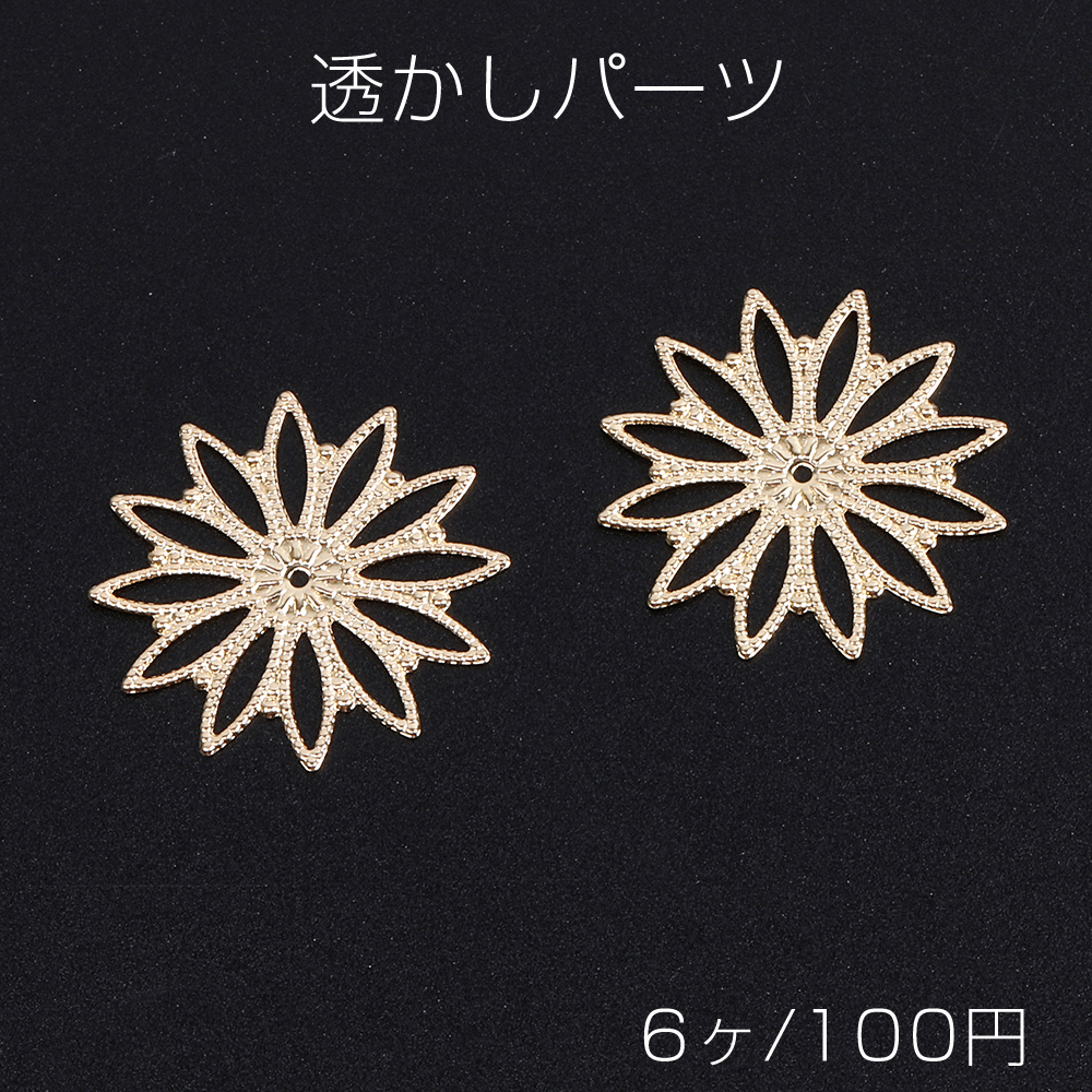 透かしパーツ フラワー 25mm ゴールド(6ヶ)