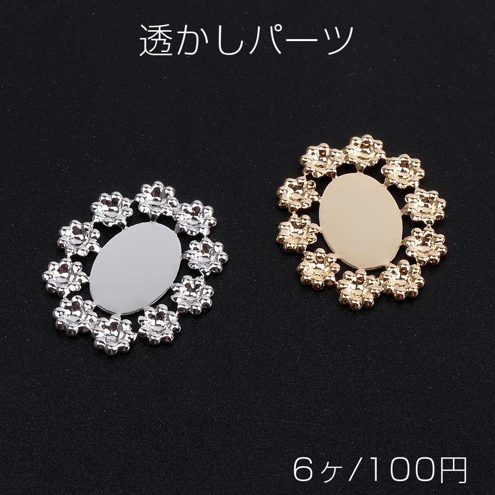 透かしパーツ レースオーバル ミール皿 21×24mm(6ヶ)