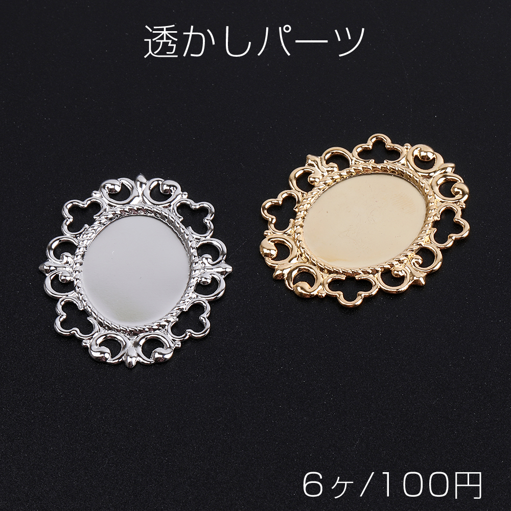 透かしパーツ レースオーバル ミール皿 27×32mm(6ヶ)