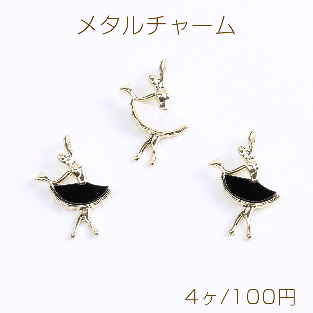 メタルチャーム 踊り子 アクリル貼り 15×22mm ゴールド(4ヶ)