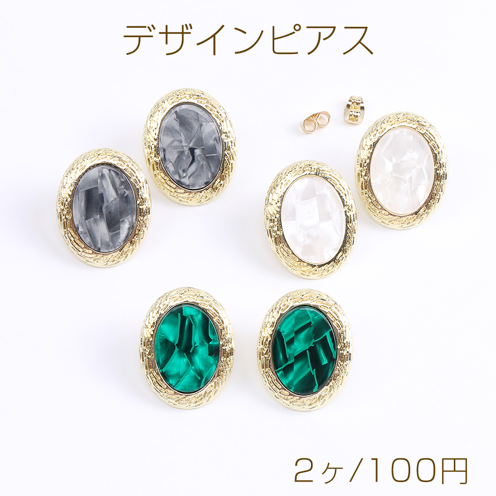 デザインピアス アクリル付きピアス オーバル 20×24mm ゴールド(2ヶ)