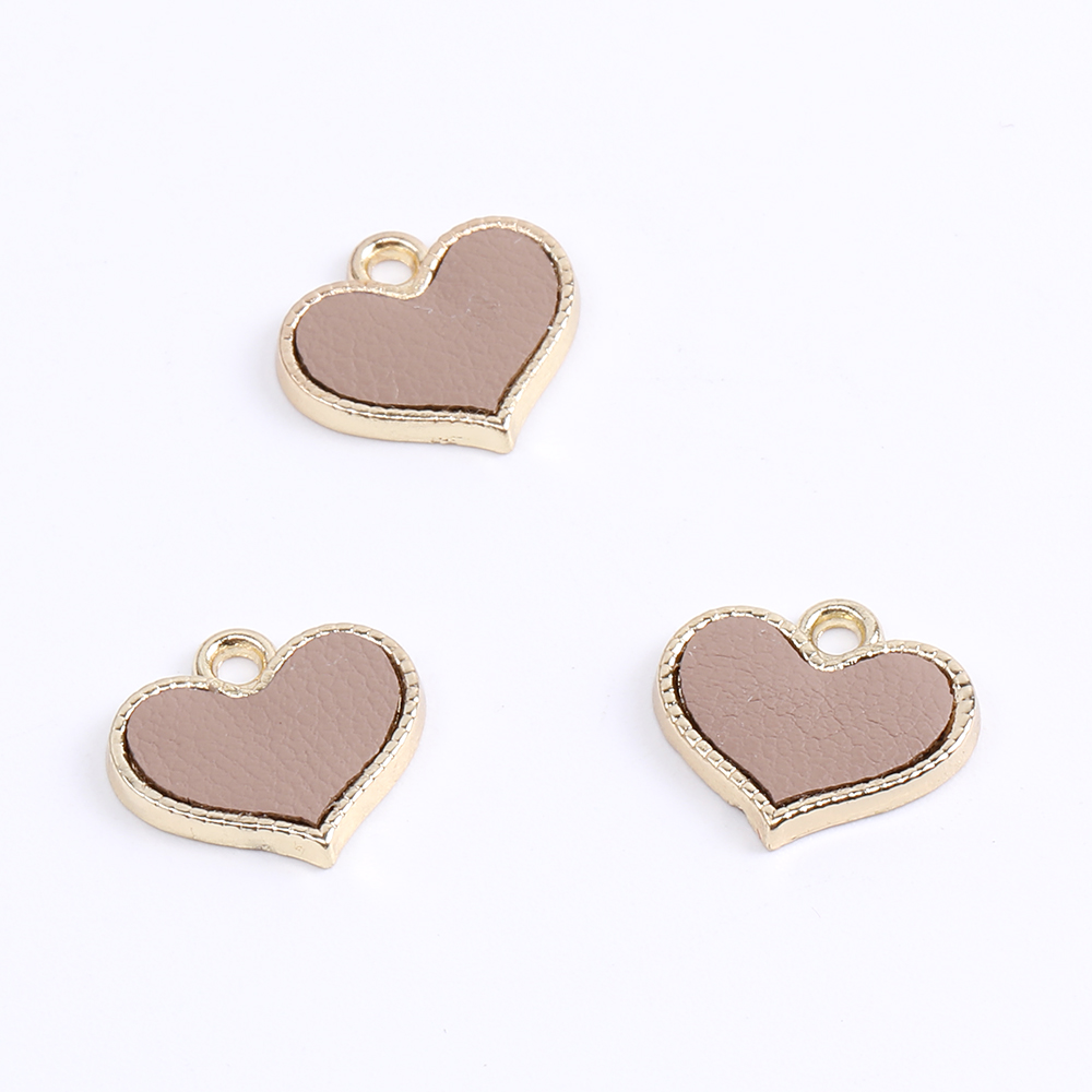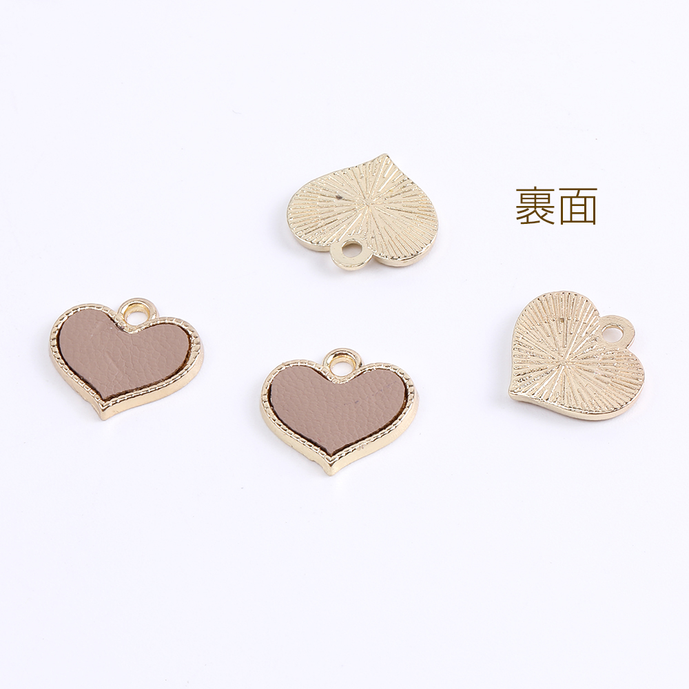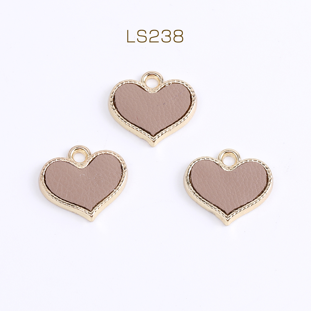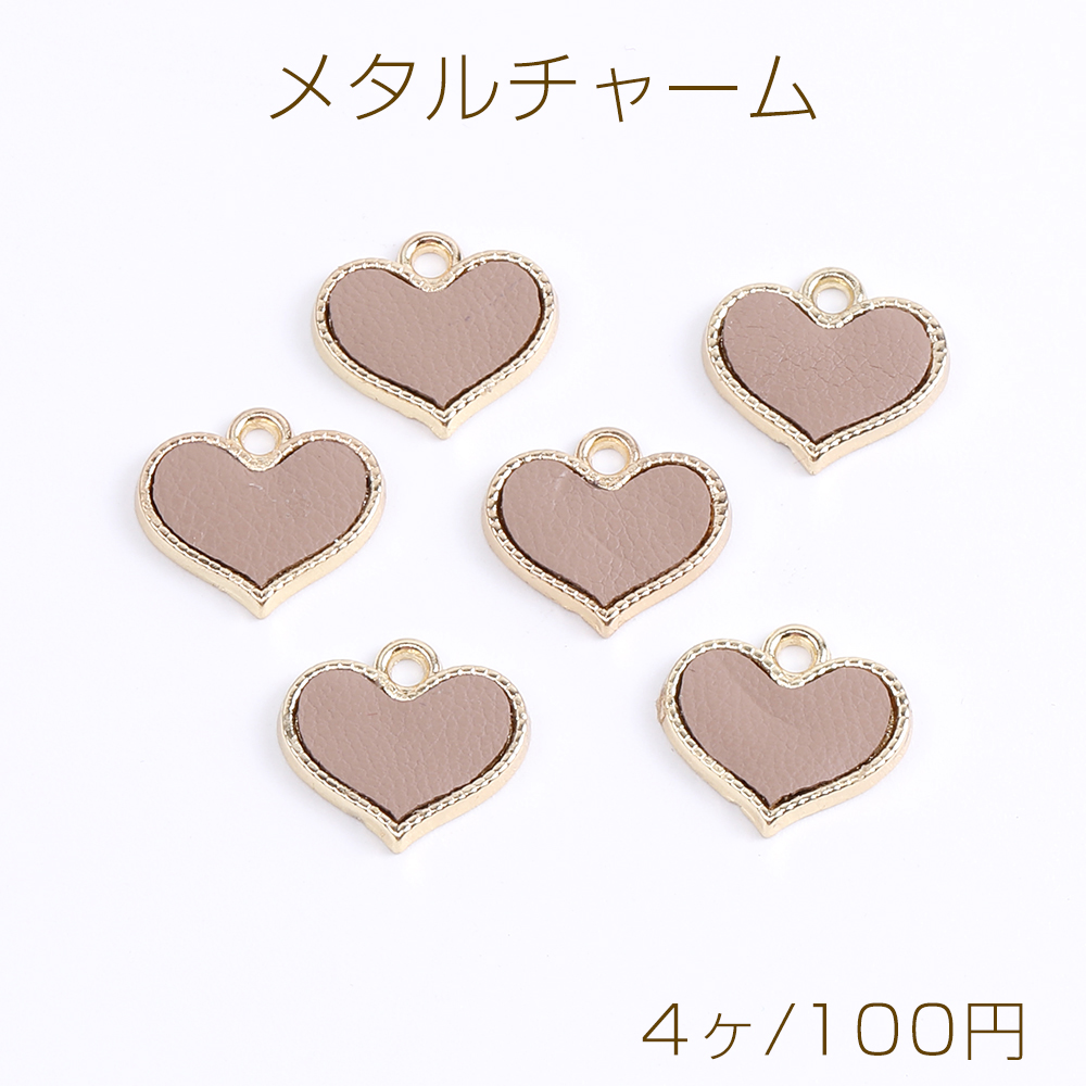 メタルチャーム ハート型 PUレザー貼り カン付き 14×15mm ゴールド ブラウン(4ヶ)