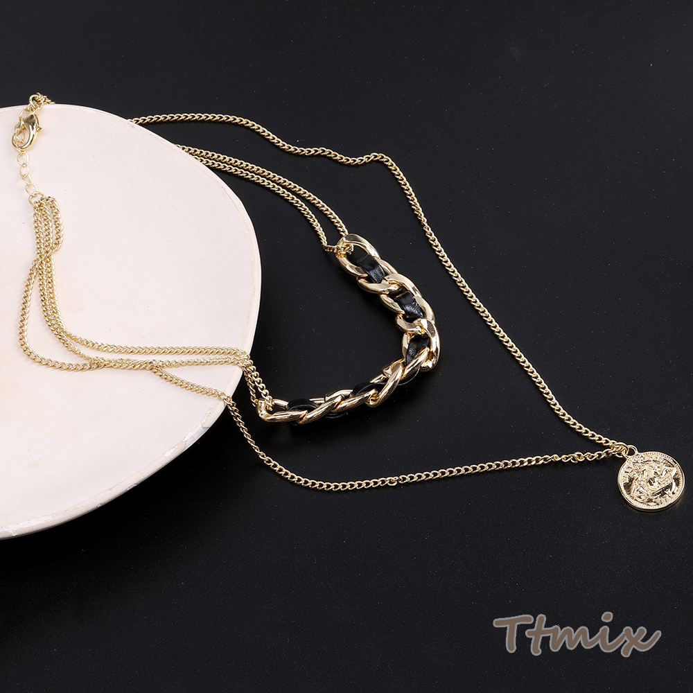 メタルネックレス コインチャーム付き 37cm ゴールド(1連)