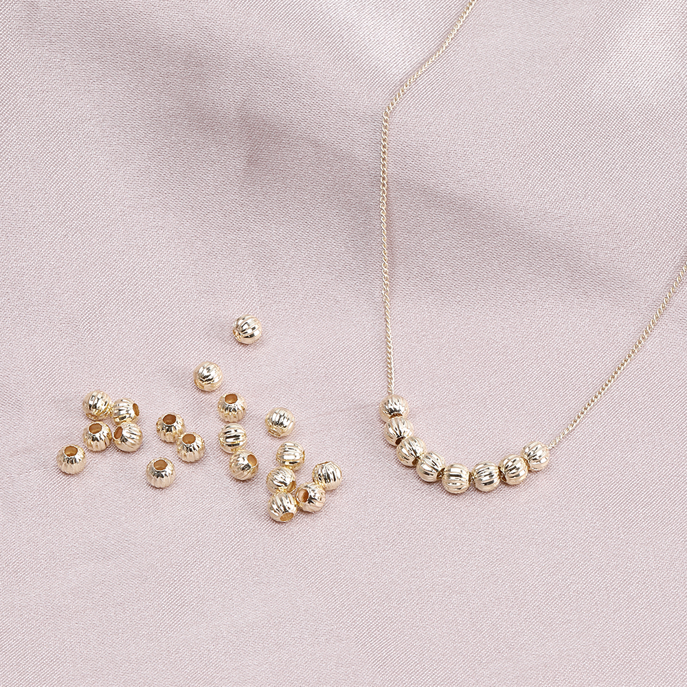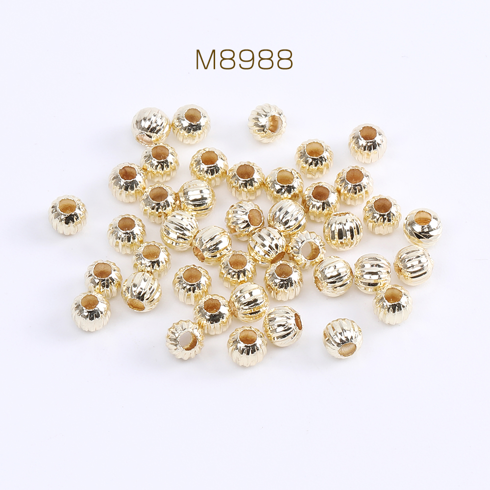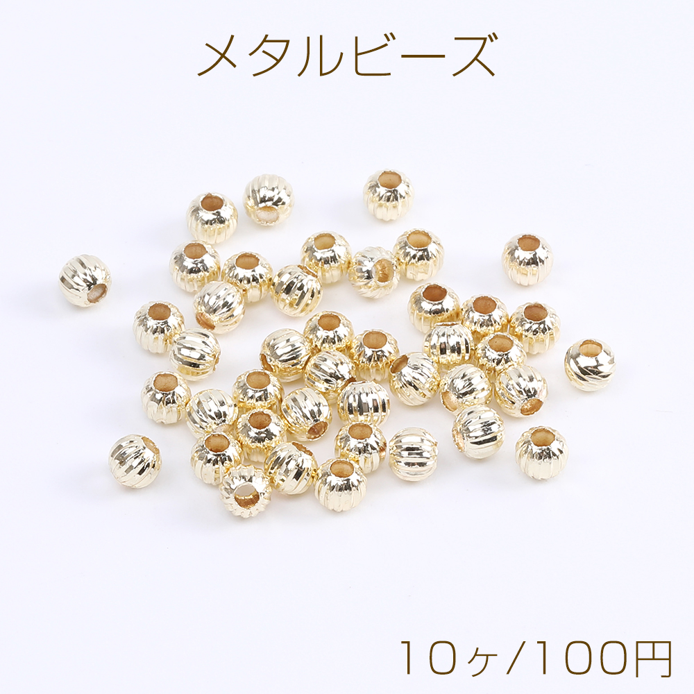 高品質メタルビーズ 筋入り丸玉ビーズ 4mm ゴールド(10ヶ)