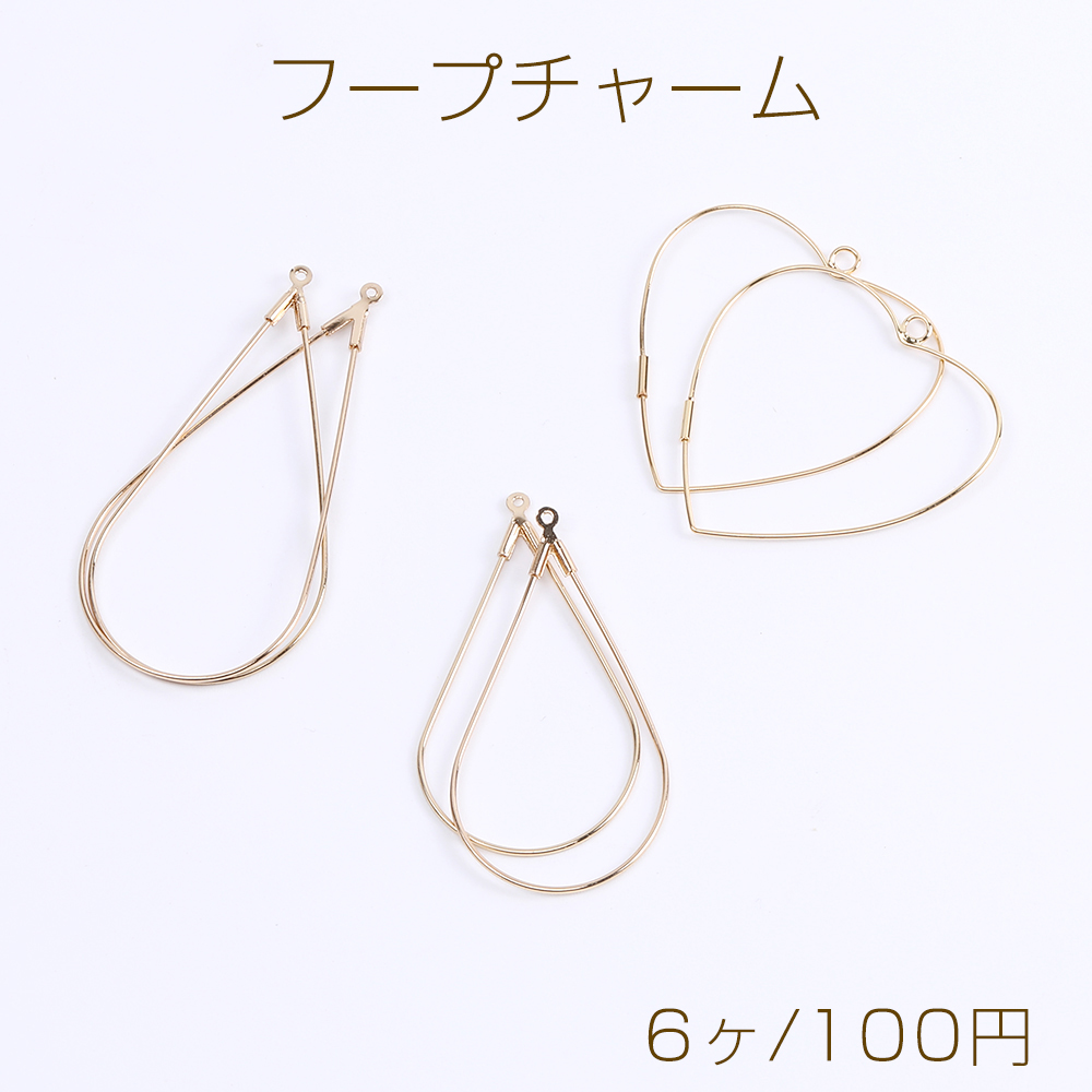 ワイヤーフープチャーム 全3種 カン付き ゴールド(6ヶ)