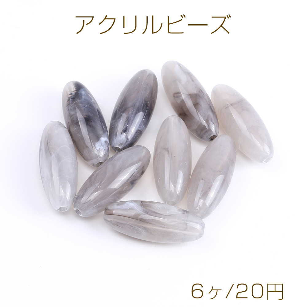 アクリルビーズ ロングオーバル 12×31mm グレー(6ヶ)