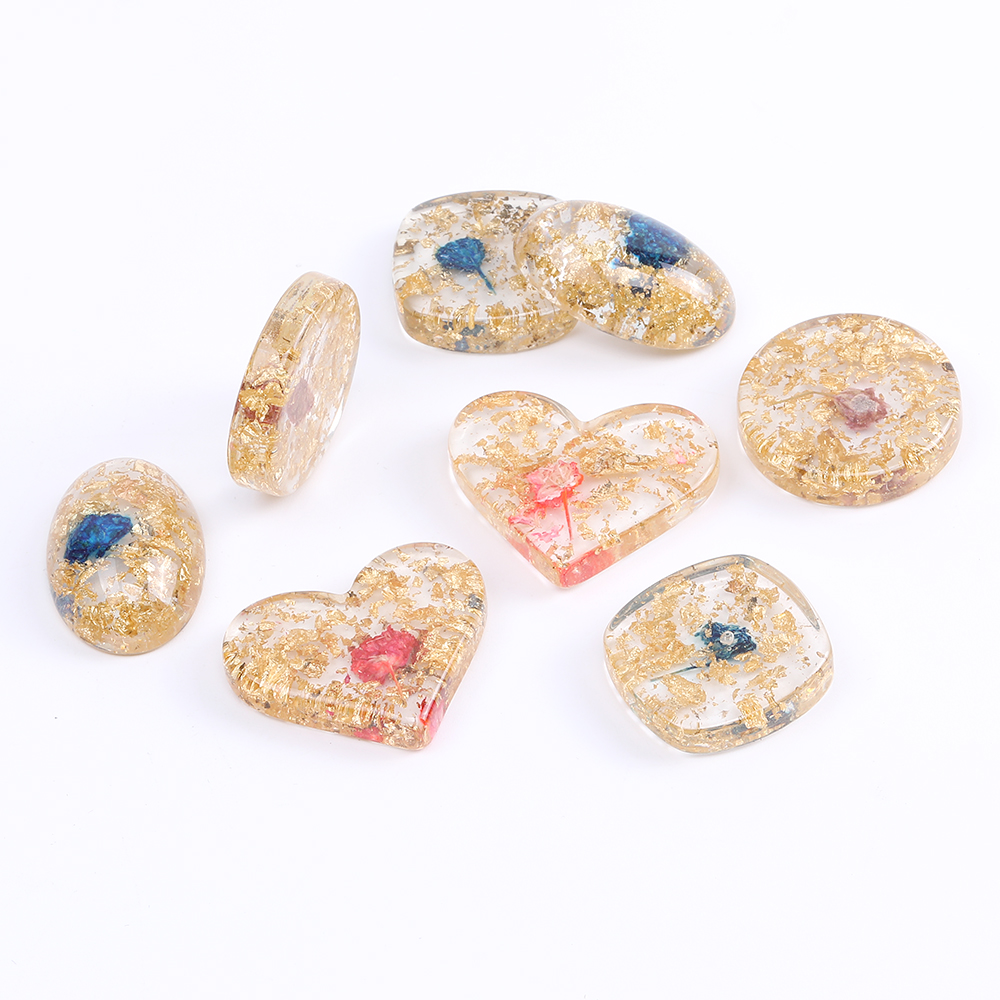 貼付けパーツ 樹脂貼付けパーツ 樹脂カボション 金箔&ドライフラワー封入 クリア(2ヶ)