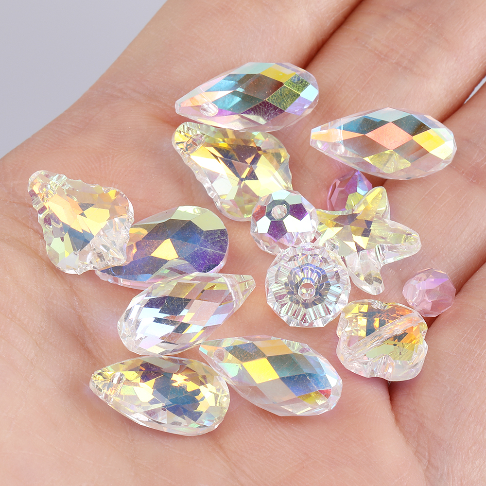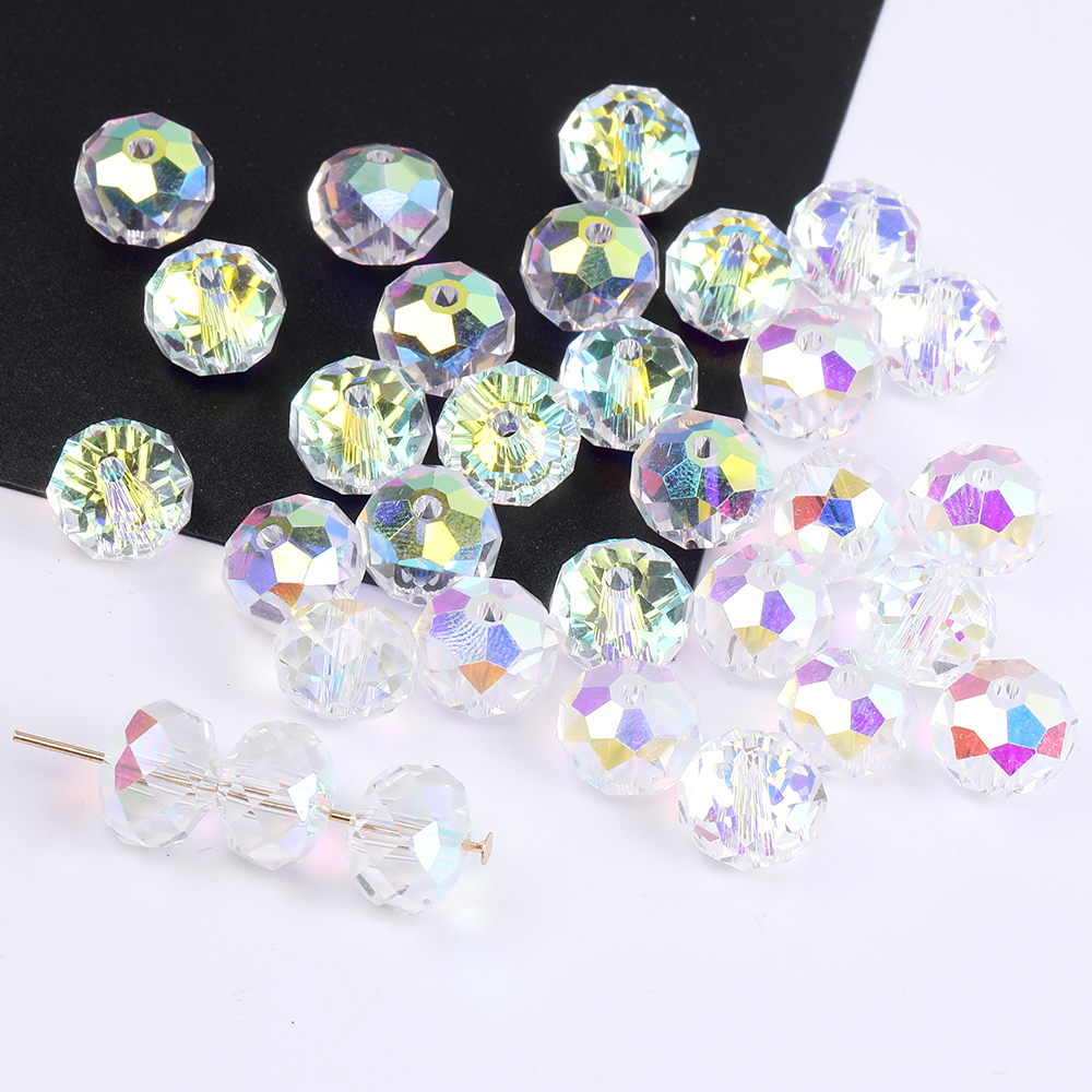 ガラスビーズ ボタンカット 8×9mm ABカラー(10ヶ)