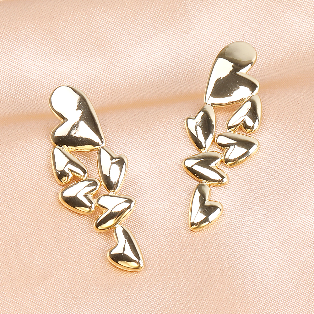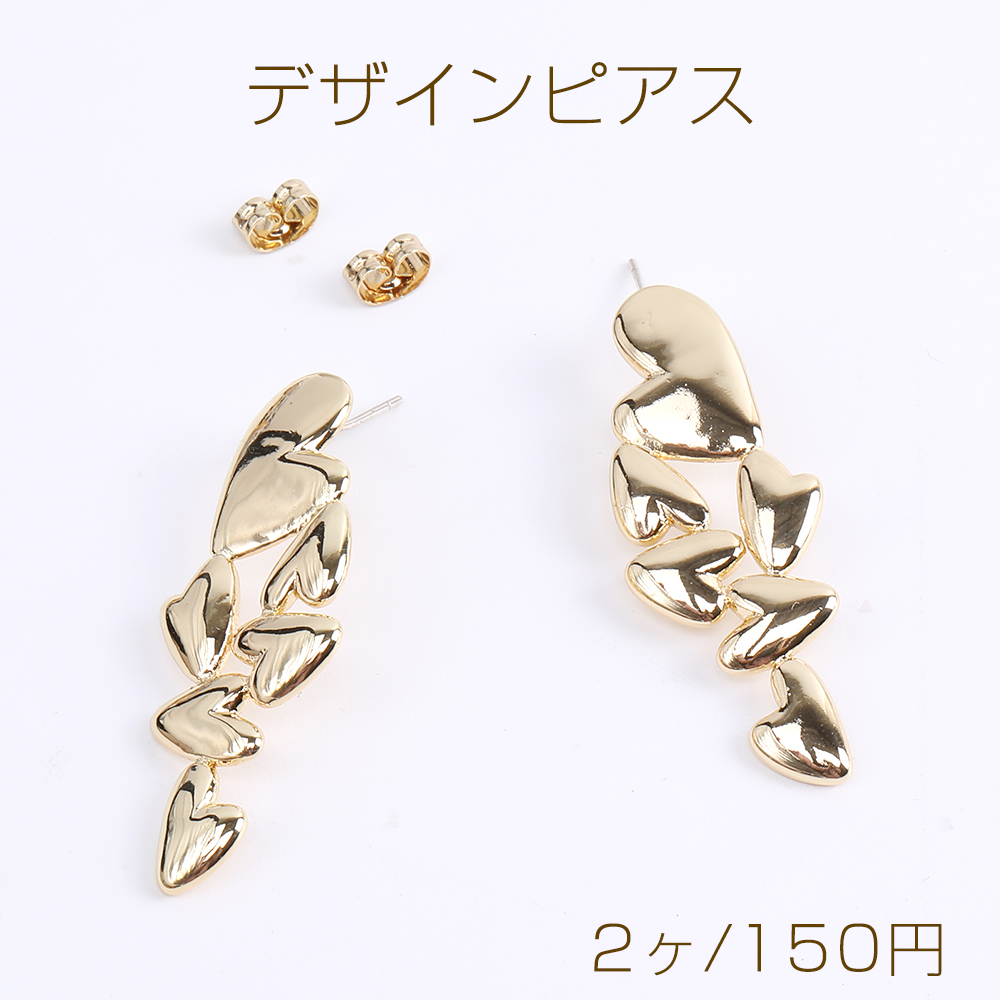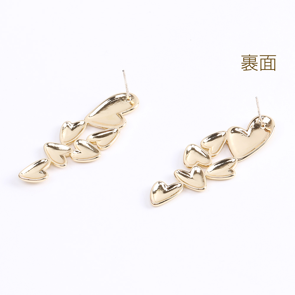 高品質デザインピアス ハート型 15×43mm ゴールド(2ヶ)