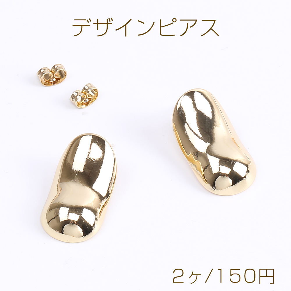 高品質デザインピアス 不規則型 13×25mm ゴールド(2ヶ)
