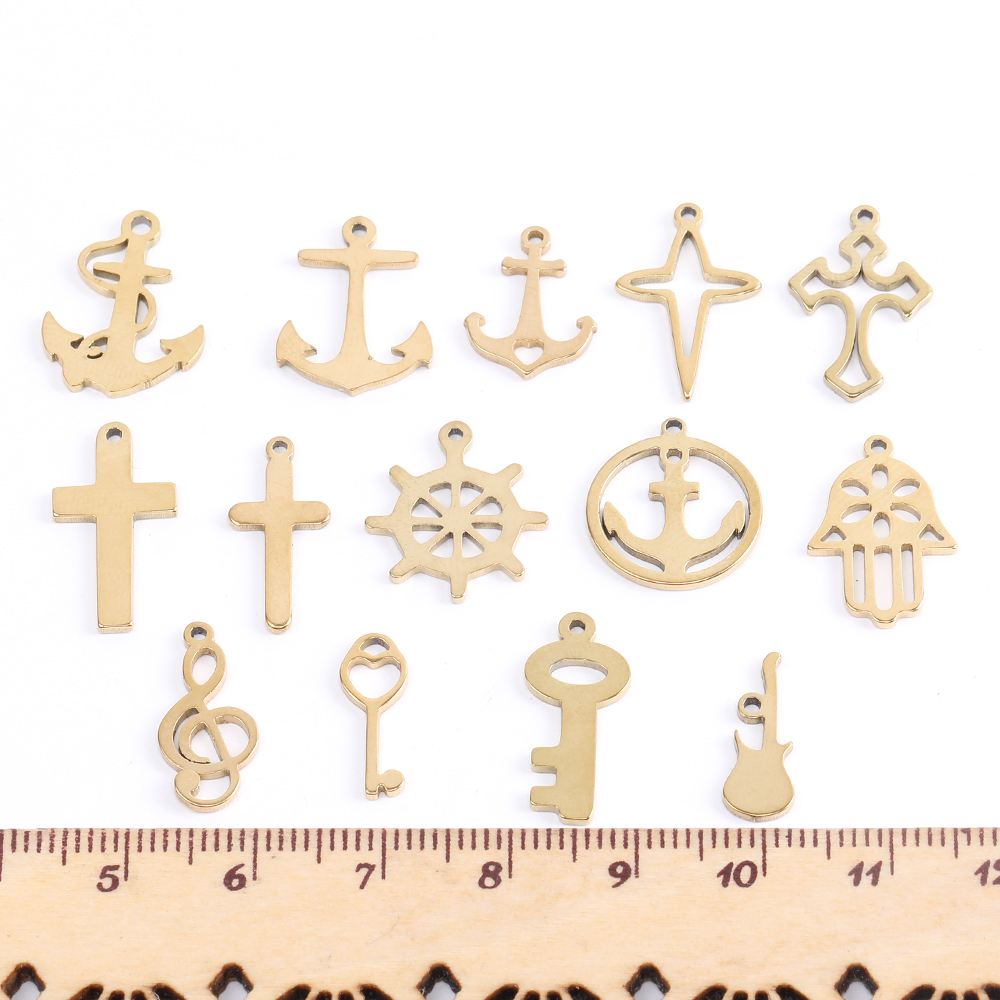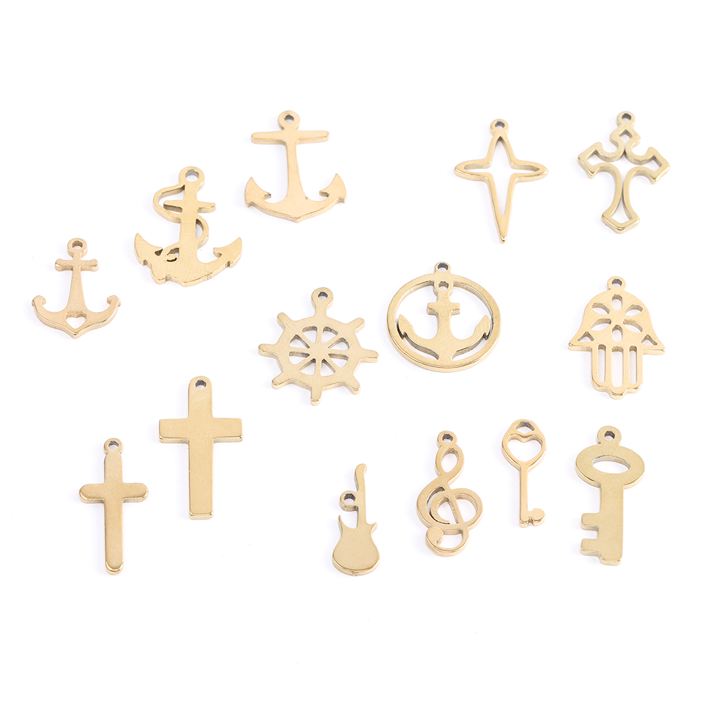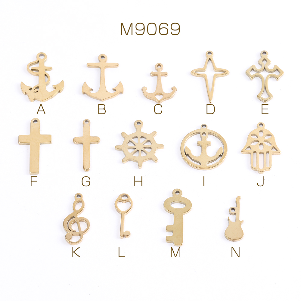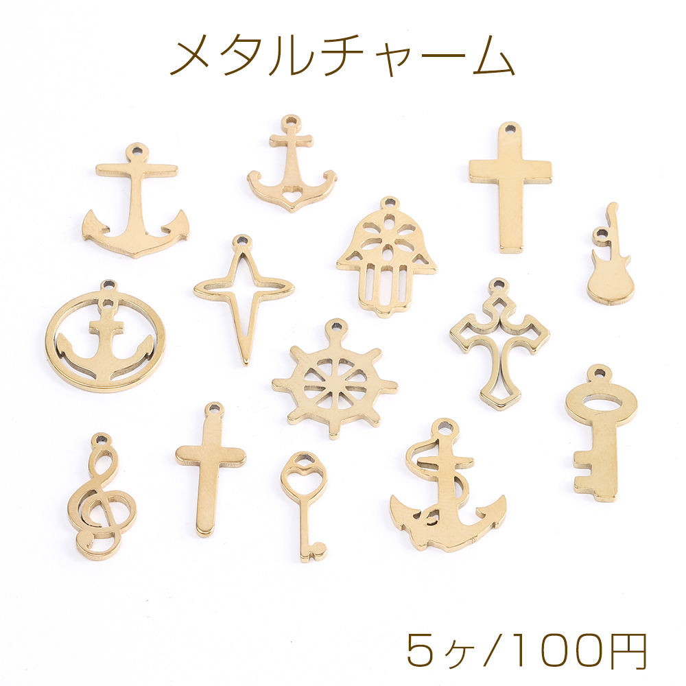 ステンレス製 メタルチャーム 舵 錨 クロス キー 楽器 音符 ゴールド 全14種