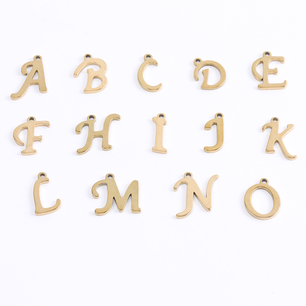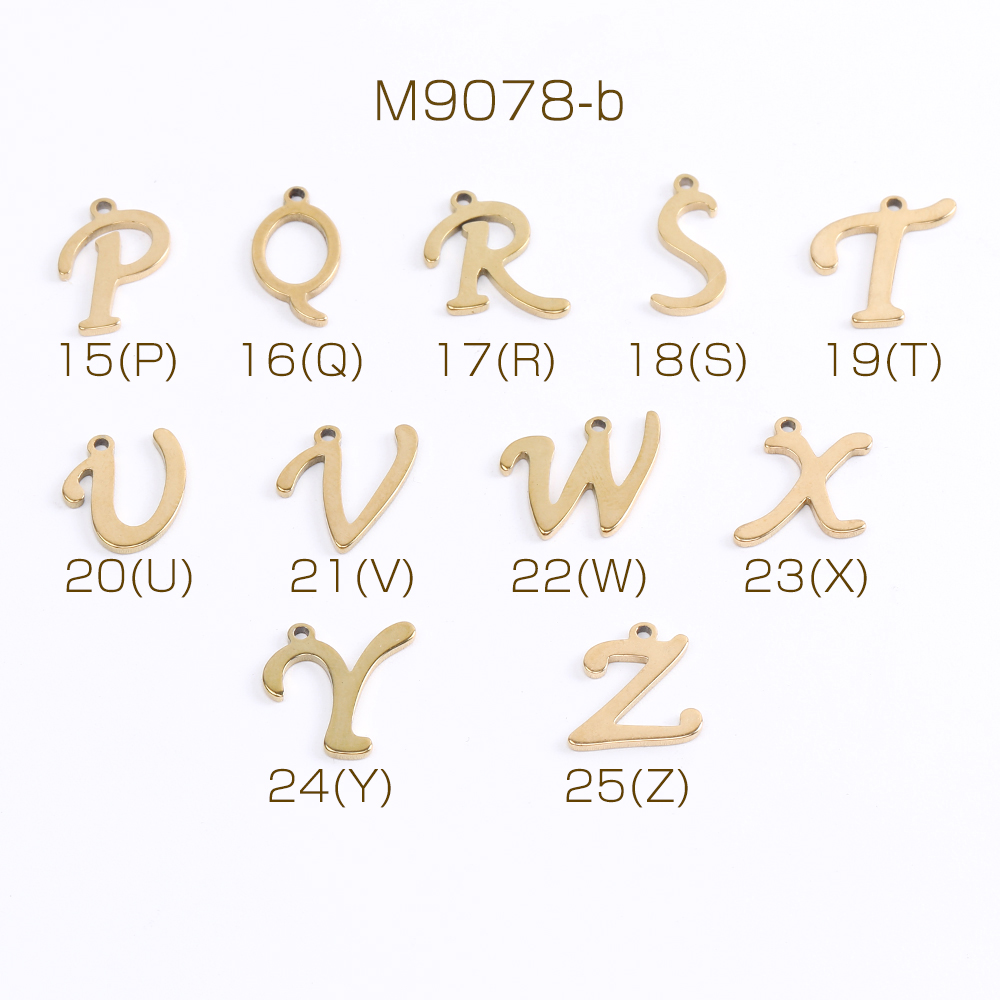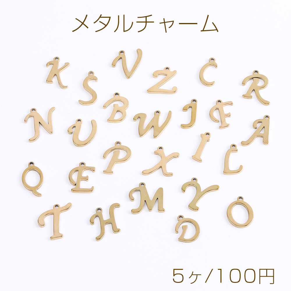 ステンレス製 メタルチャーム アルファベットチャーム ゴールド No.15-25(5ヶ)