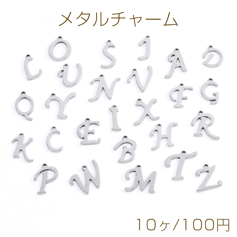 ステンレス製 メタルチャーム アルファベットチャーム No.14-26(10ヶ)