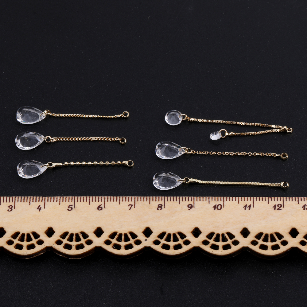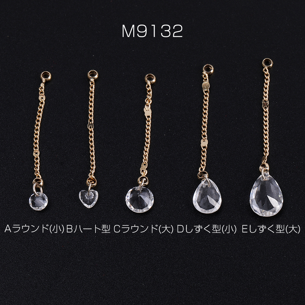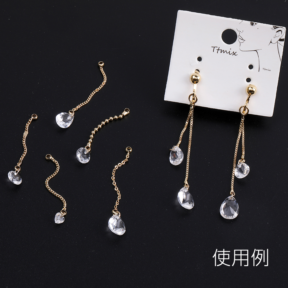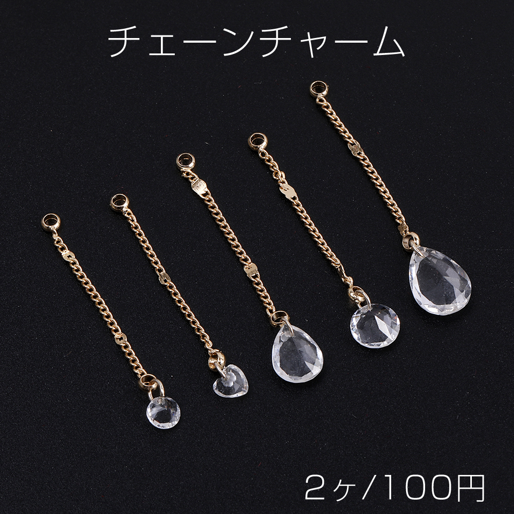 チェーンチャーム A ガラスチャーム付き カン付き ゴールド クリスタル(2ヶ)