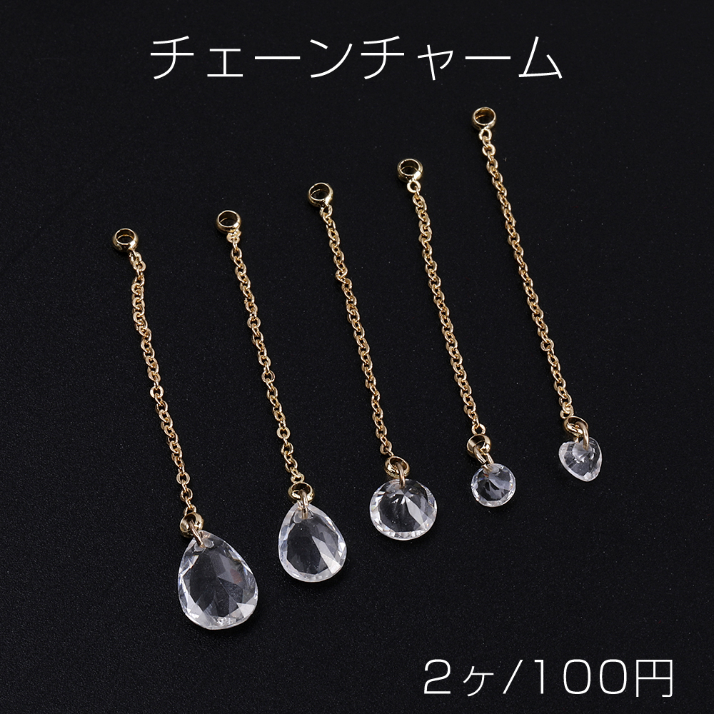 チェーンチャーム C ガラスチャーム付き カン付き ゴールド クリスタル(2ヶ)