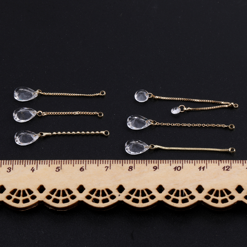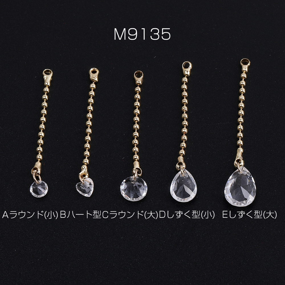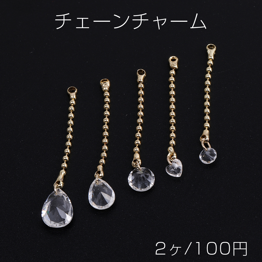 チェーンチャーム D ガラスチャーム付き カン付き ゴールド クリスタル(2ヶ)