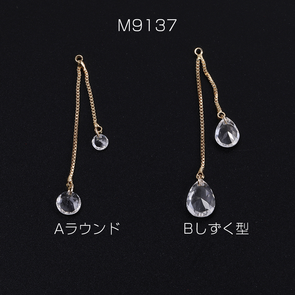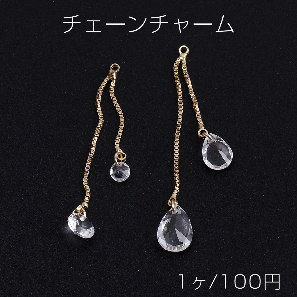 チェーンチャーム F ガラスチャーム付き カン付き ゴールド クリスタル(1ヶ)