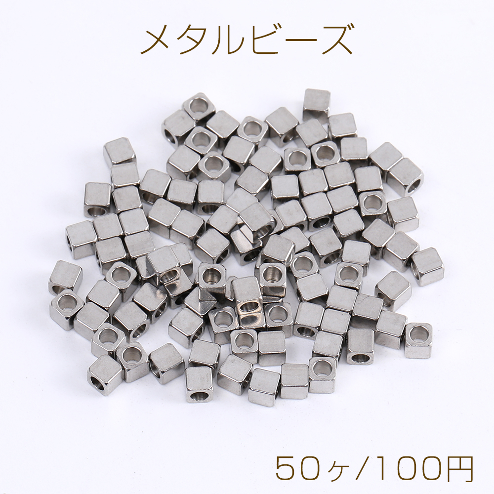 ステンレス製 メタルビーズ スクエア型 3mm(50ヶ)