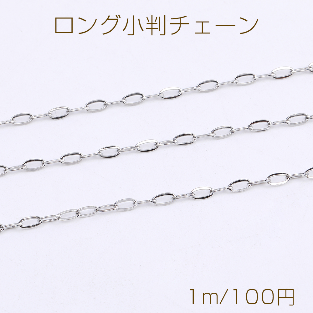 ステンレス製 ロング小判チェーン 幅約2mm(1m)