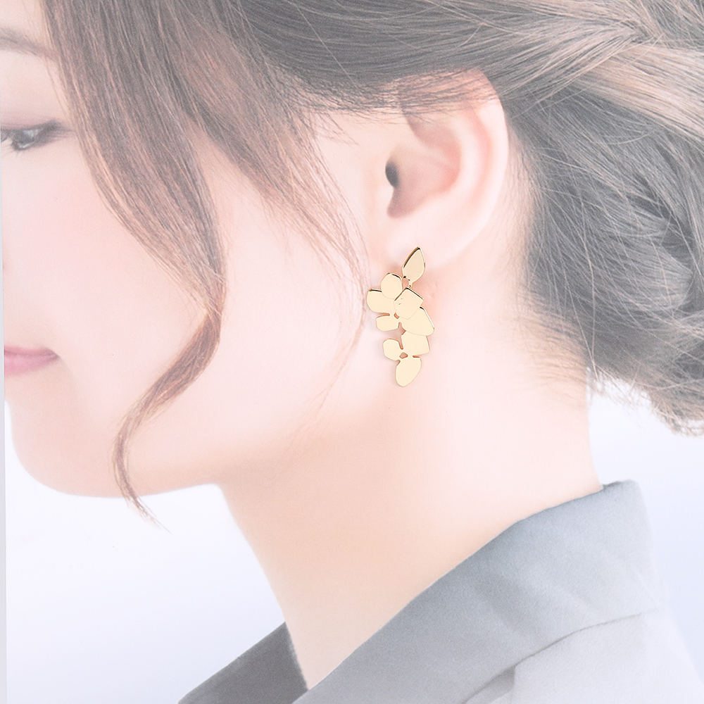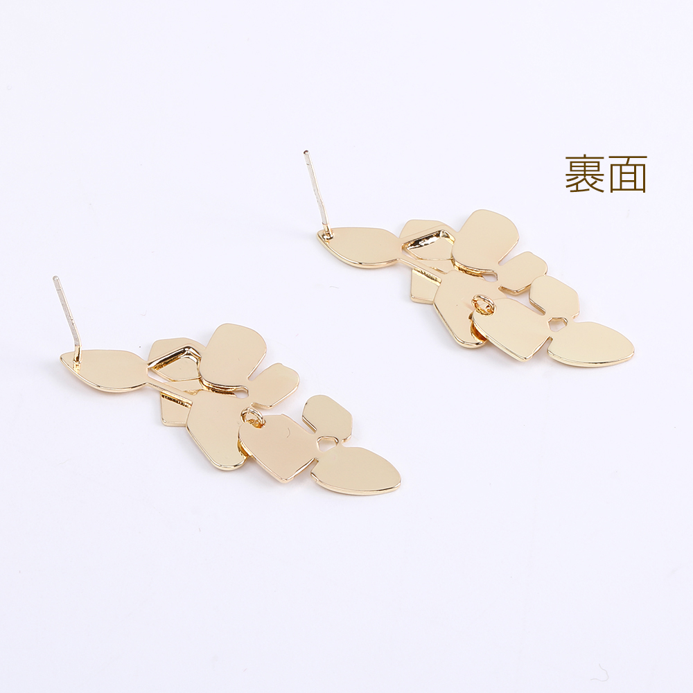 高品質デザインピアス リーフ 18×37mm ゴールド(2ヶ)