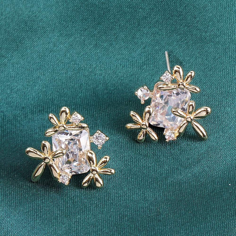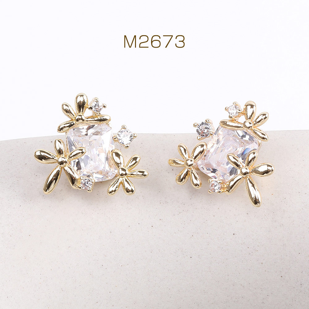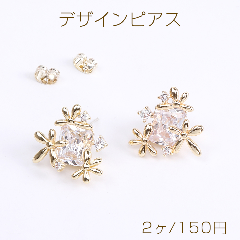 高品質デザインピアス フラワー ジルコニア付き 17×19mm ゴールド(2ヶ)