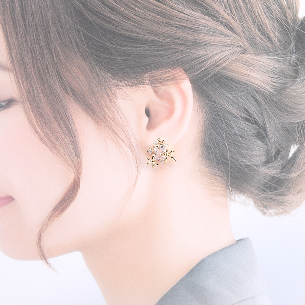 素材:貼付部→ジルコニア、銅製 ピアスポスト→シルバー925製 ピアスキャッチ→鉄製