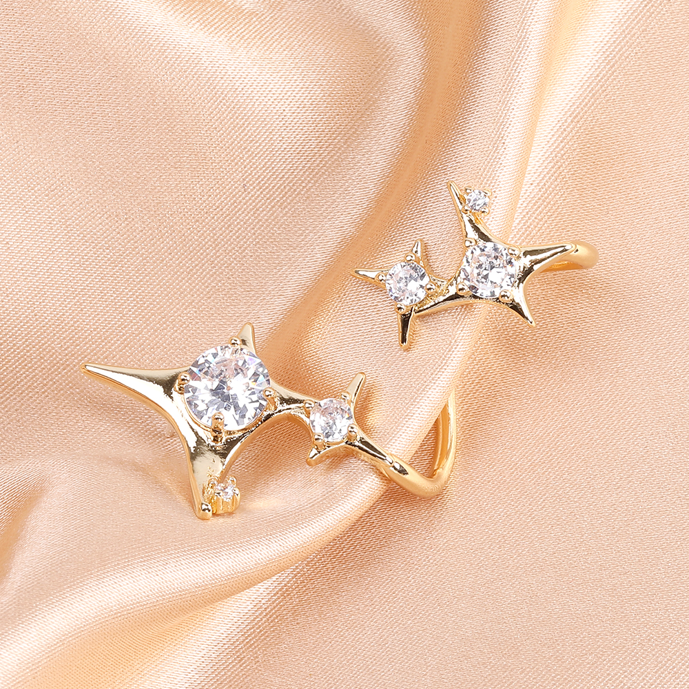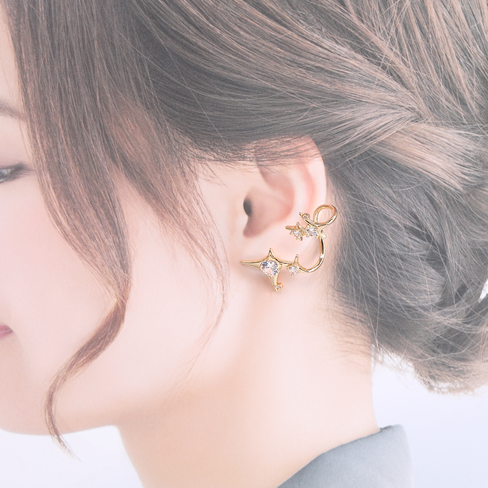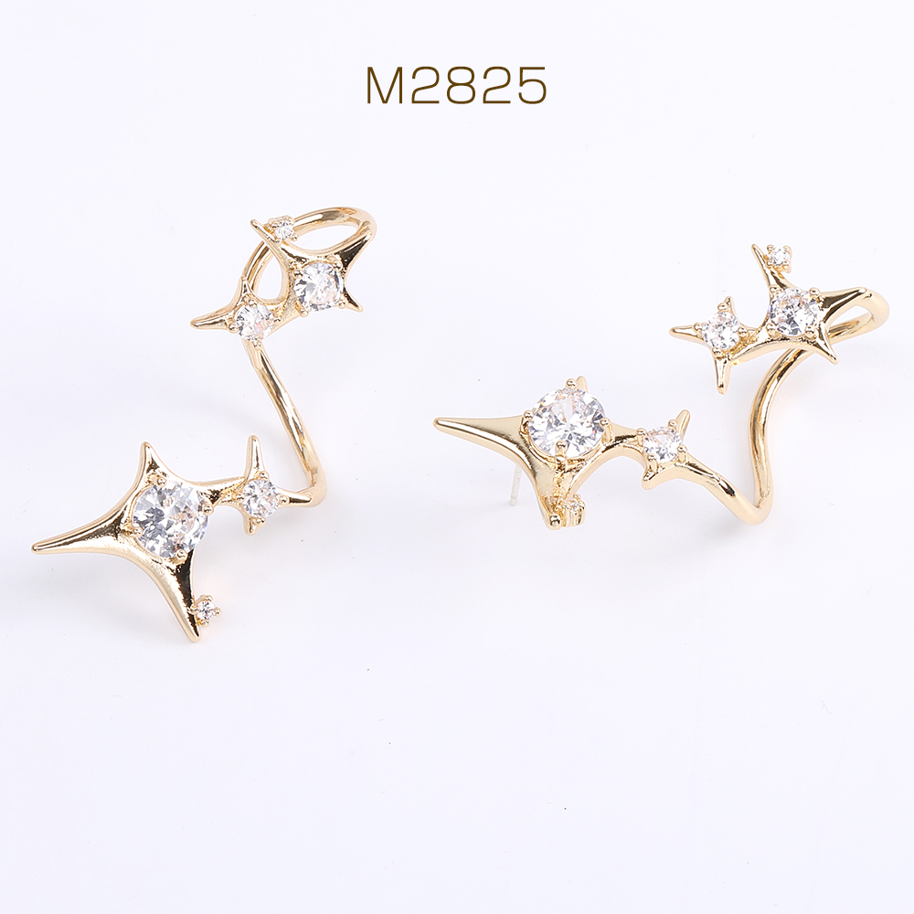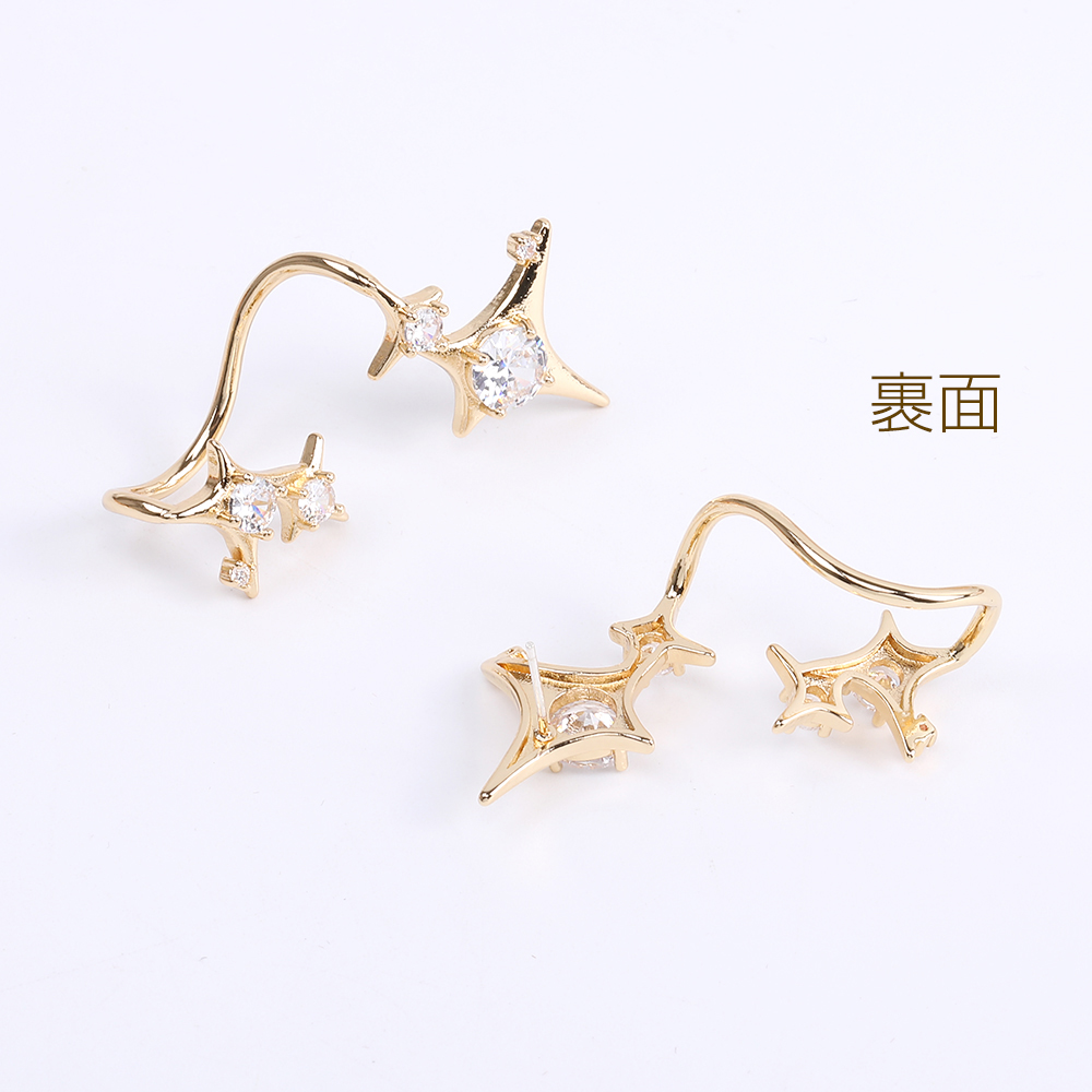 高品質デザインピアス&イヤーカフ 星形 ジルコニア付き 17×43mm ゴールド(1ヶ)