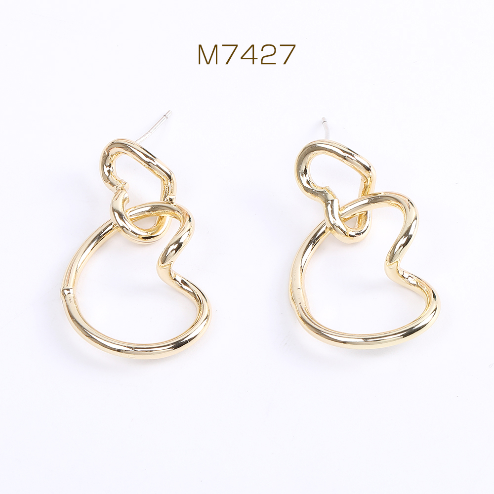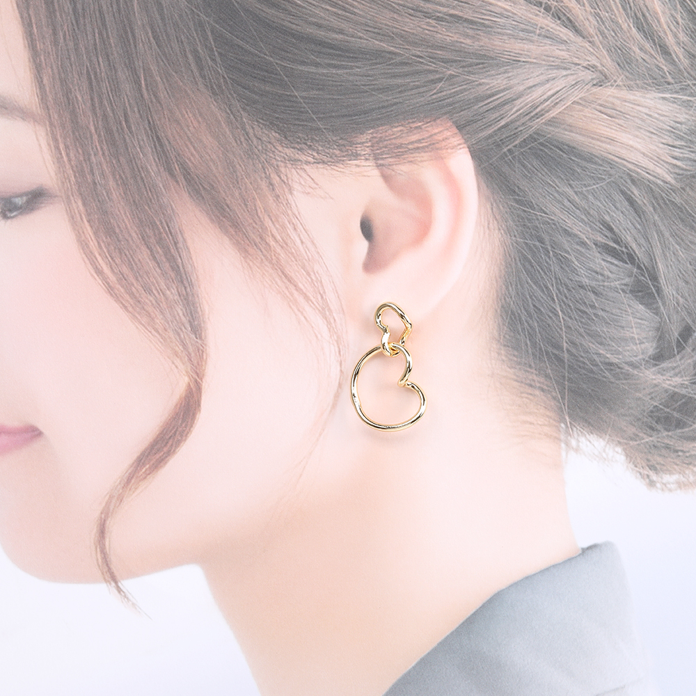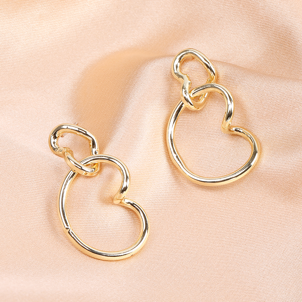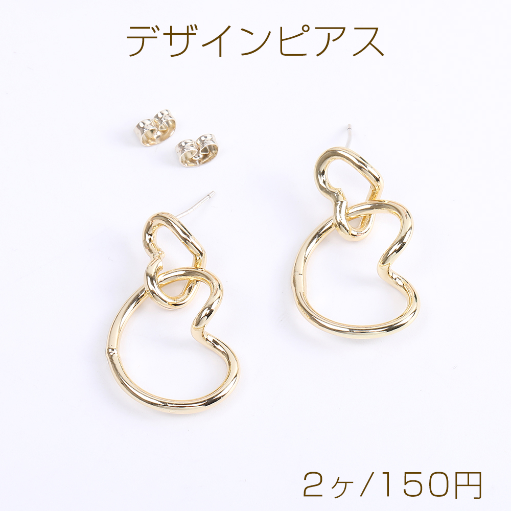高品質デザインピアス 2連ハート型 19×33mm ゴールド(2ヶ)